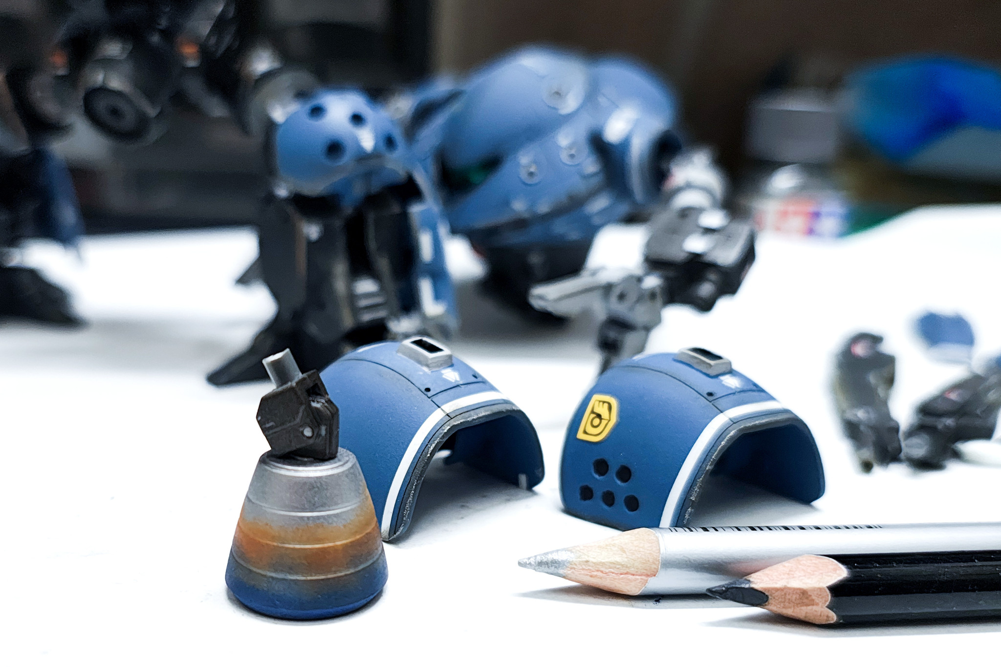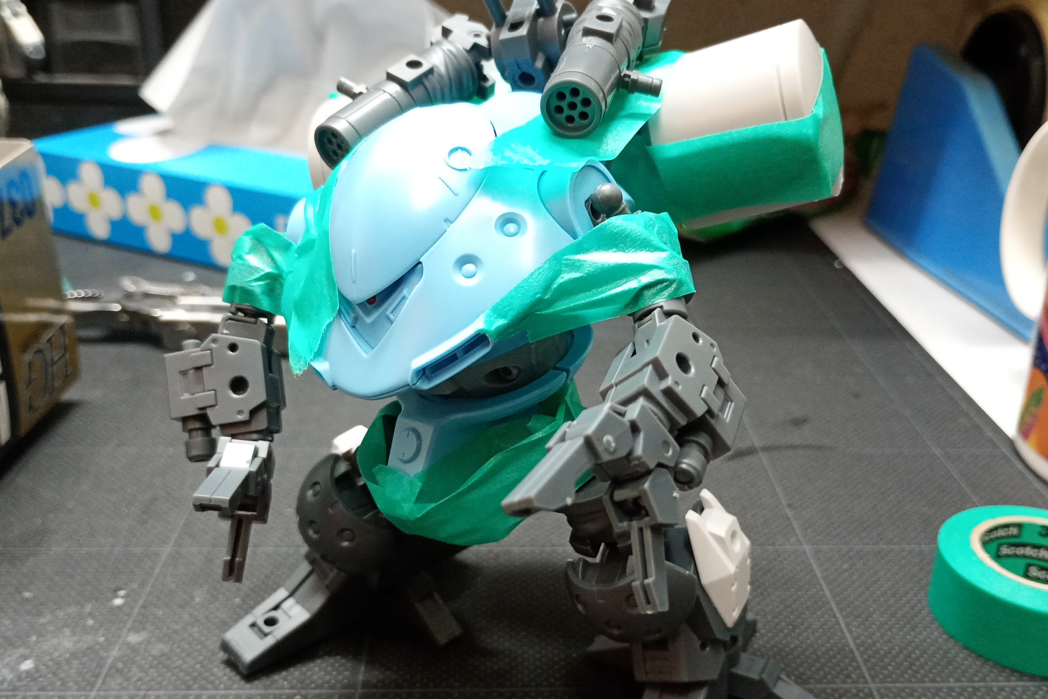関節にはボールジョイントを仕込んだり、外装にはネオジム磁石を仕込んだりしており、塗装後でもからりバラせるようにしています。