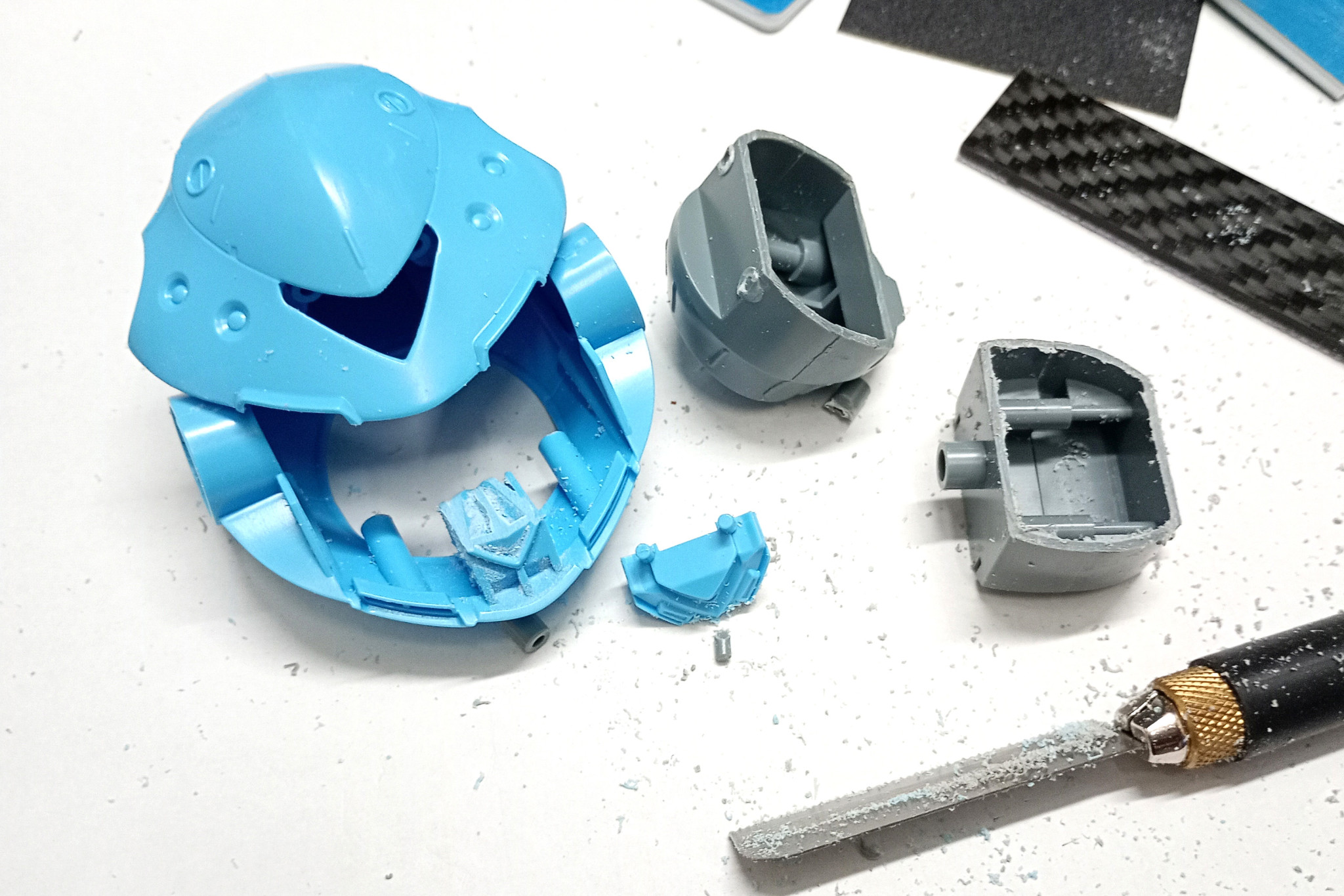 モノアイはやはり可動式にしたかったのであちこち切り離して加工。