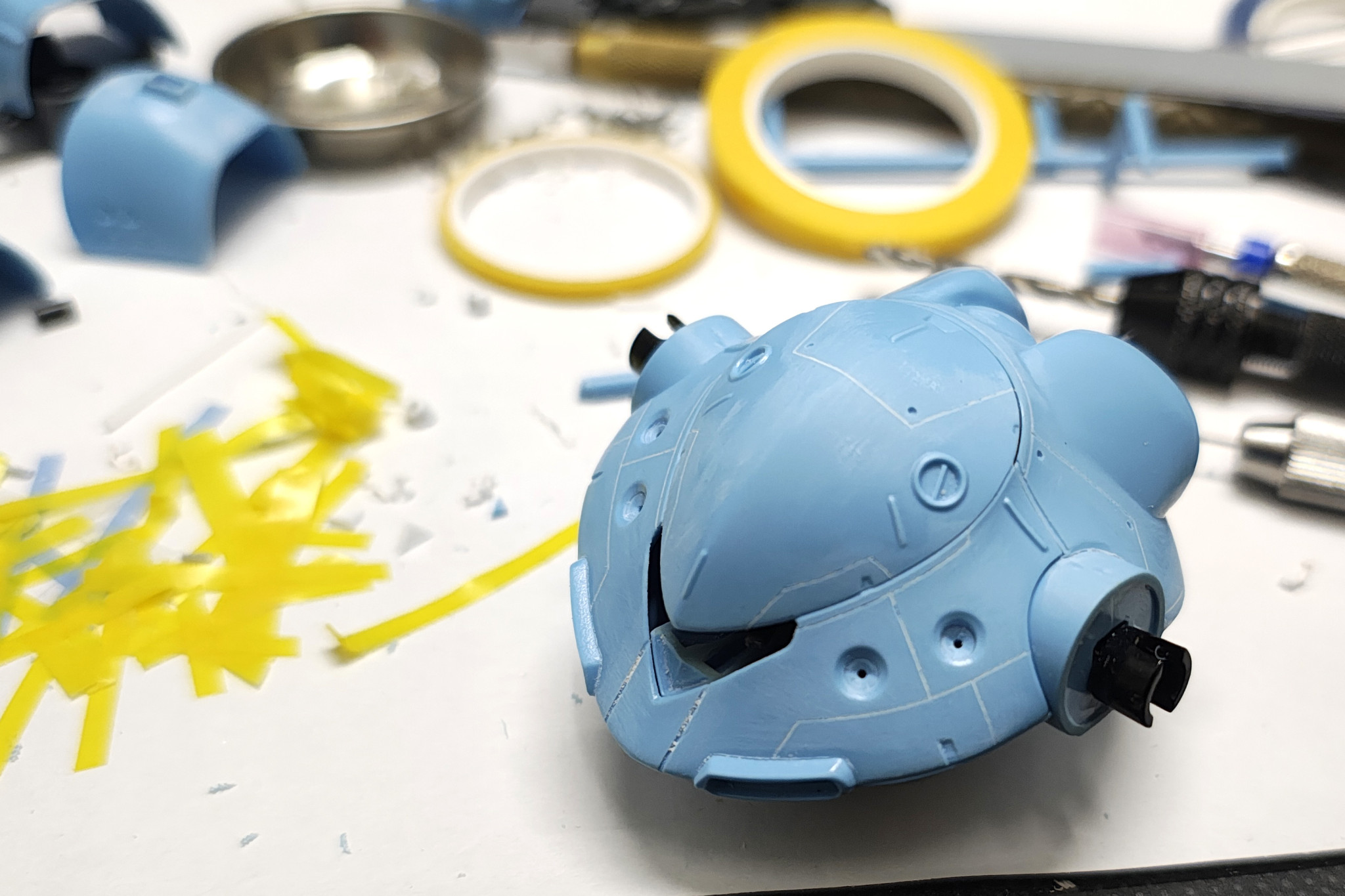 カラーは、大好きなMr.カラーのミディアムブルーをボディに、ジャーマングレーと黒鉄色をフレームに塗装。