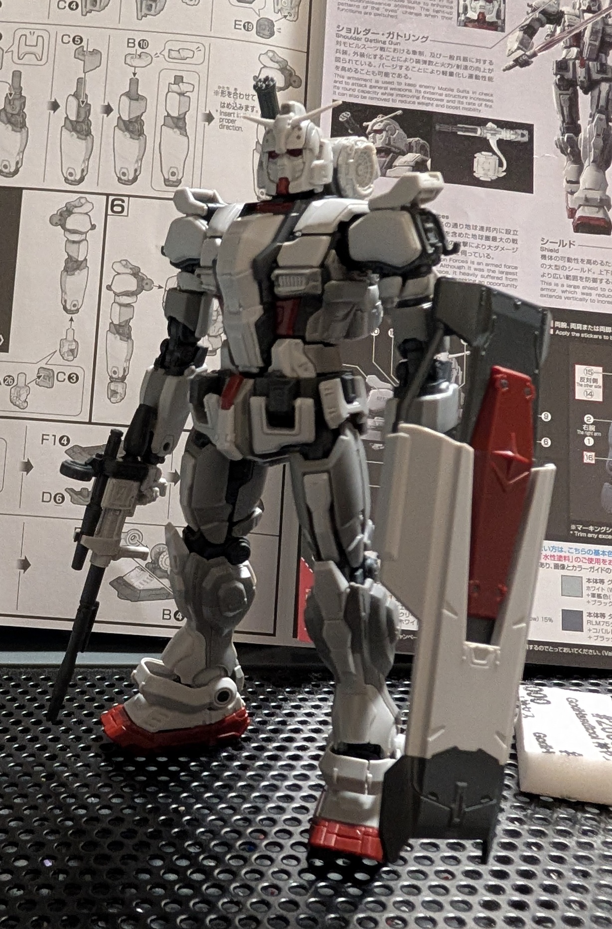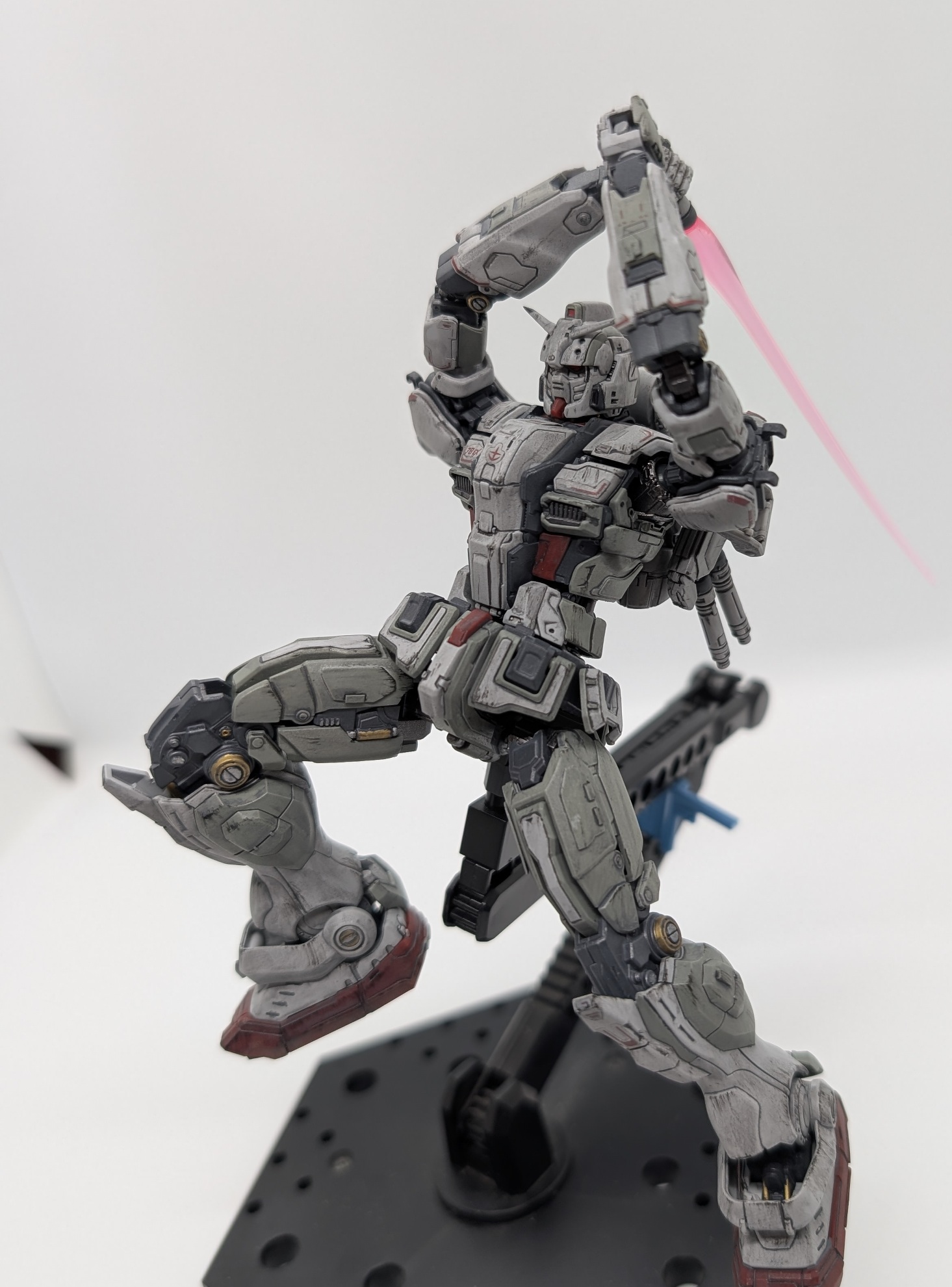今回は素組みですが、これでも全塗装です。下半身にグレーを集中させすぎて、印象が少し暗くなってしまいましたが、個人的には気に入っています!