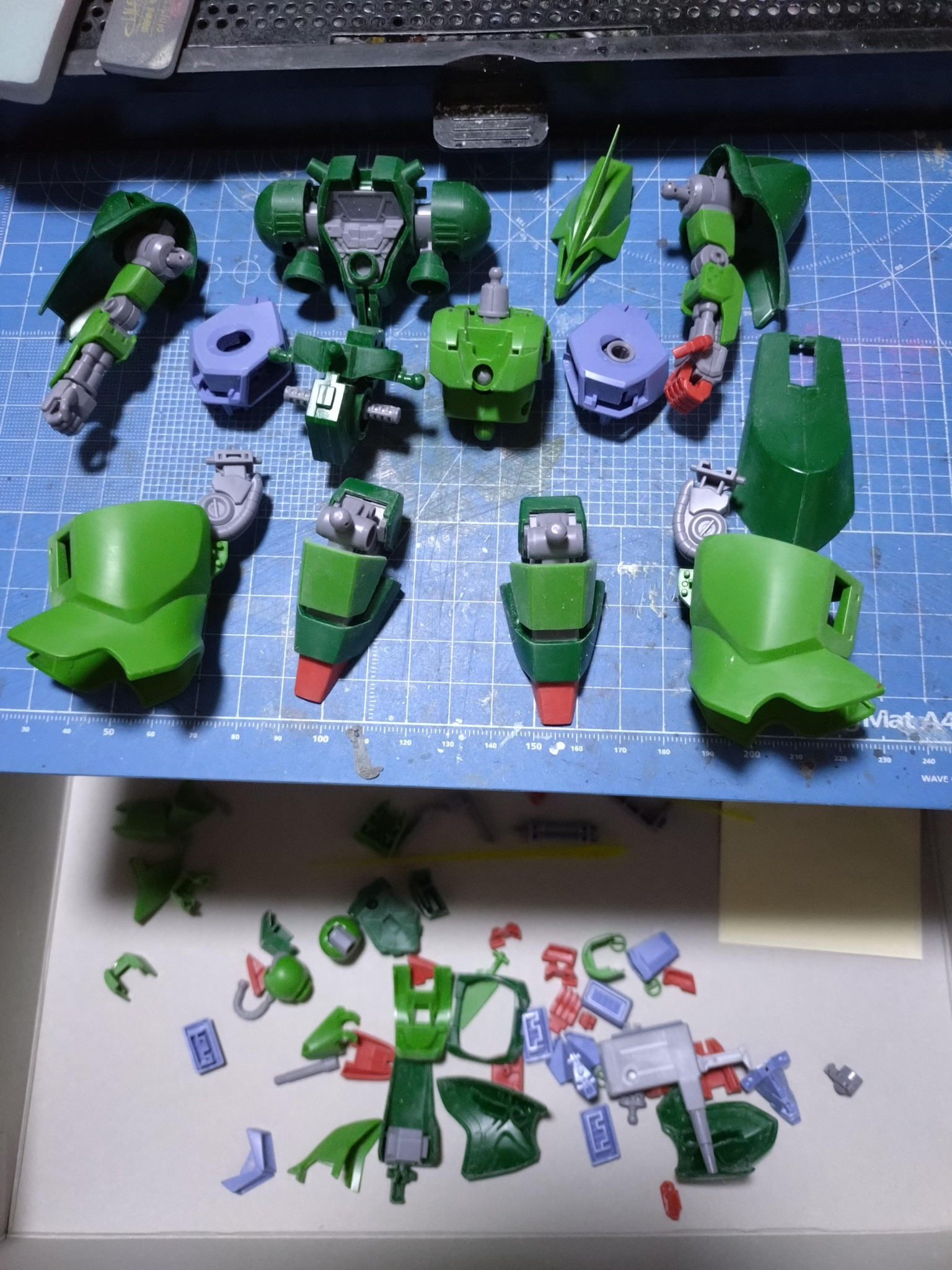 表面のヒケ取りを毎回行っています。大体のアッセンブリ毎にまとめてみました。この段階では鮮やかなグリーンでした・・・