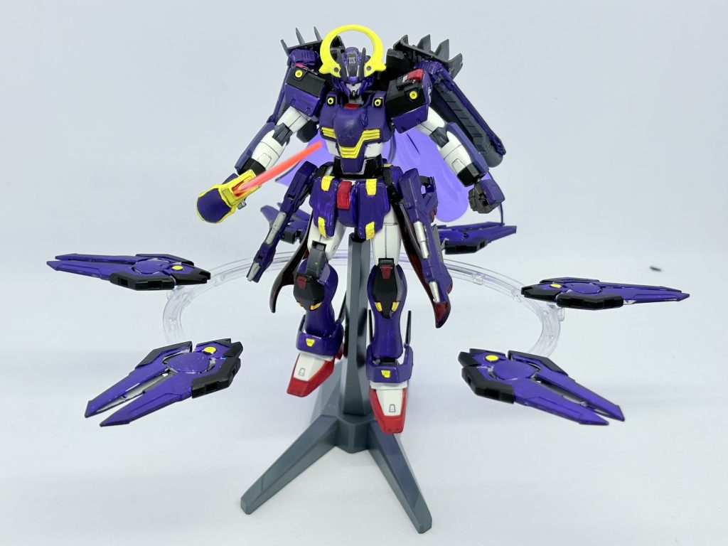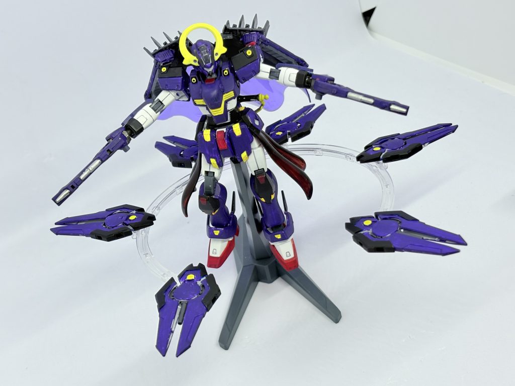 小型機体(F91、V、クロボン、X辺り)でファンネル搭載支援機というのを決めてあって当初はヴィクトリーで行こうかなと思ってましたが1,000円未満で組み立て済みのほぼ武器無しクロボンが投げ売りされててそれなら!とクロスボーン素体に。結果名前のパロり方といいうまいこといったんじゃないでしょうか。