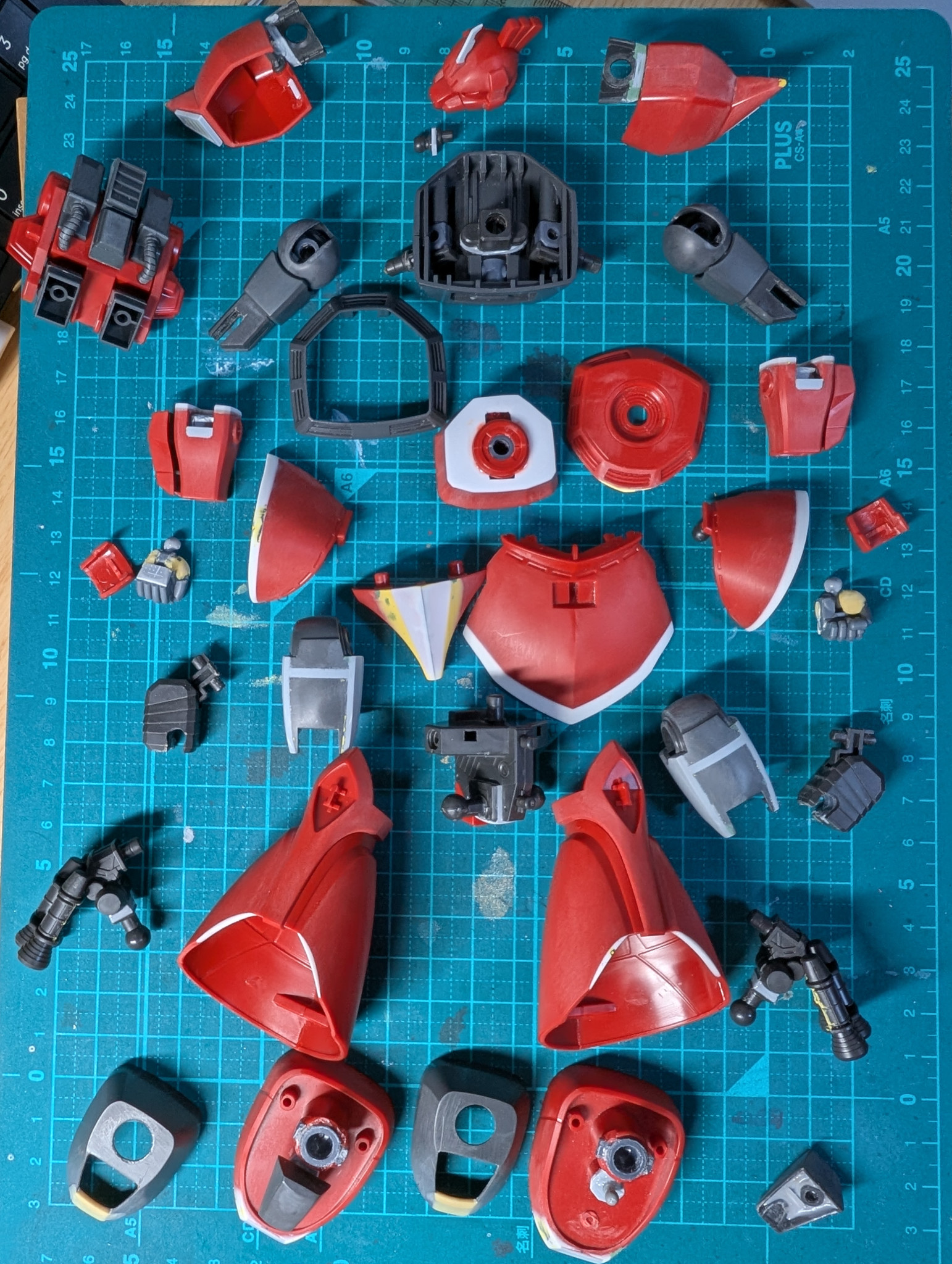 下半身重めのどっしりとしたゲルググにするのと、フェラーリみたいな深みのある赤塗装がメインテーマです