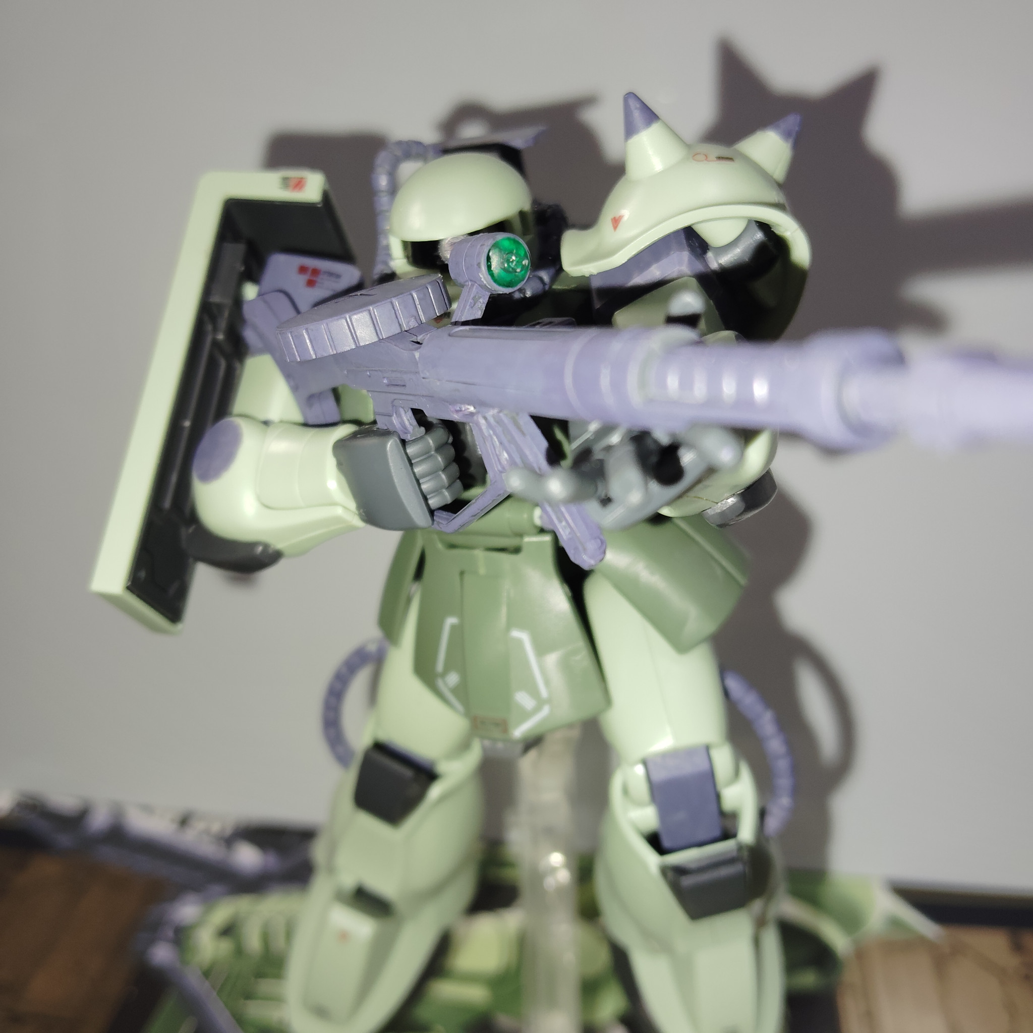 最近一番気合い入れて作った作品です。バックパックに繋がった動力パイプはリバイブグフのヒートロッド元のパイプと繋げて再現しています。