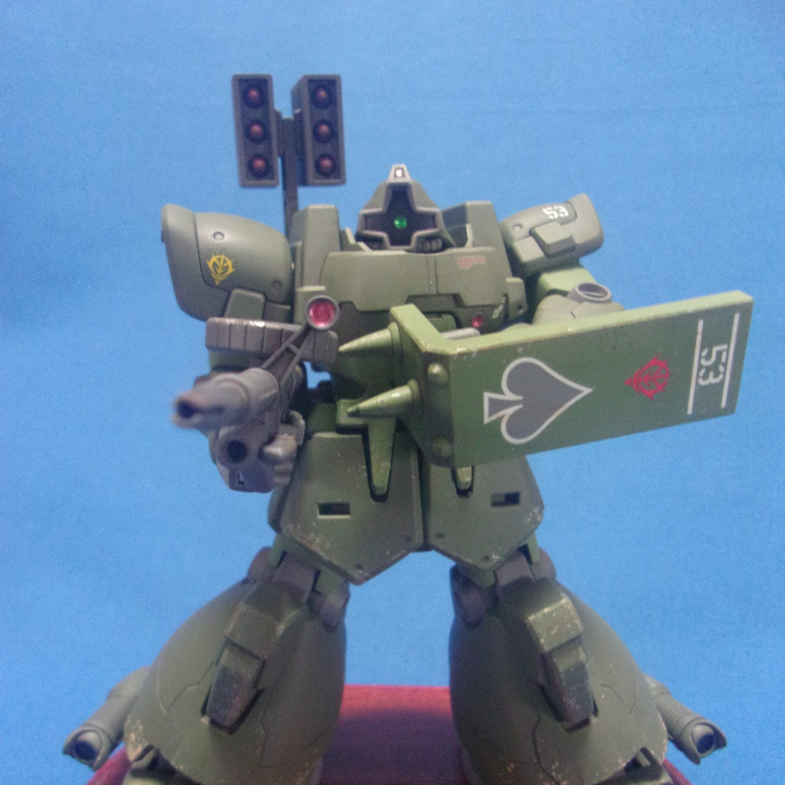 武装は使わずに余ってしまっていたHGUCグフのマシンガン、F2ザクのミサイルポッド、ゲルググマリーネのシールドを使っています。