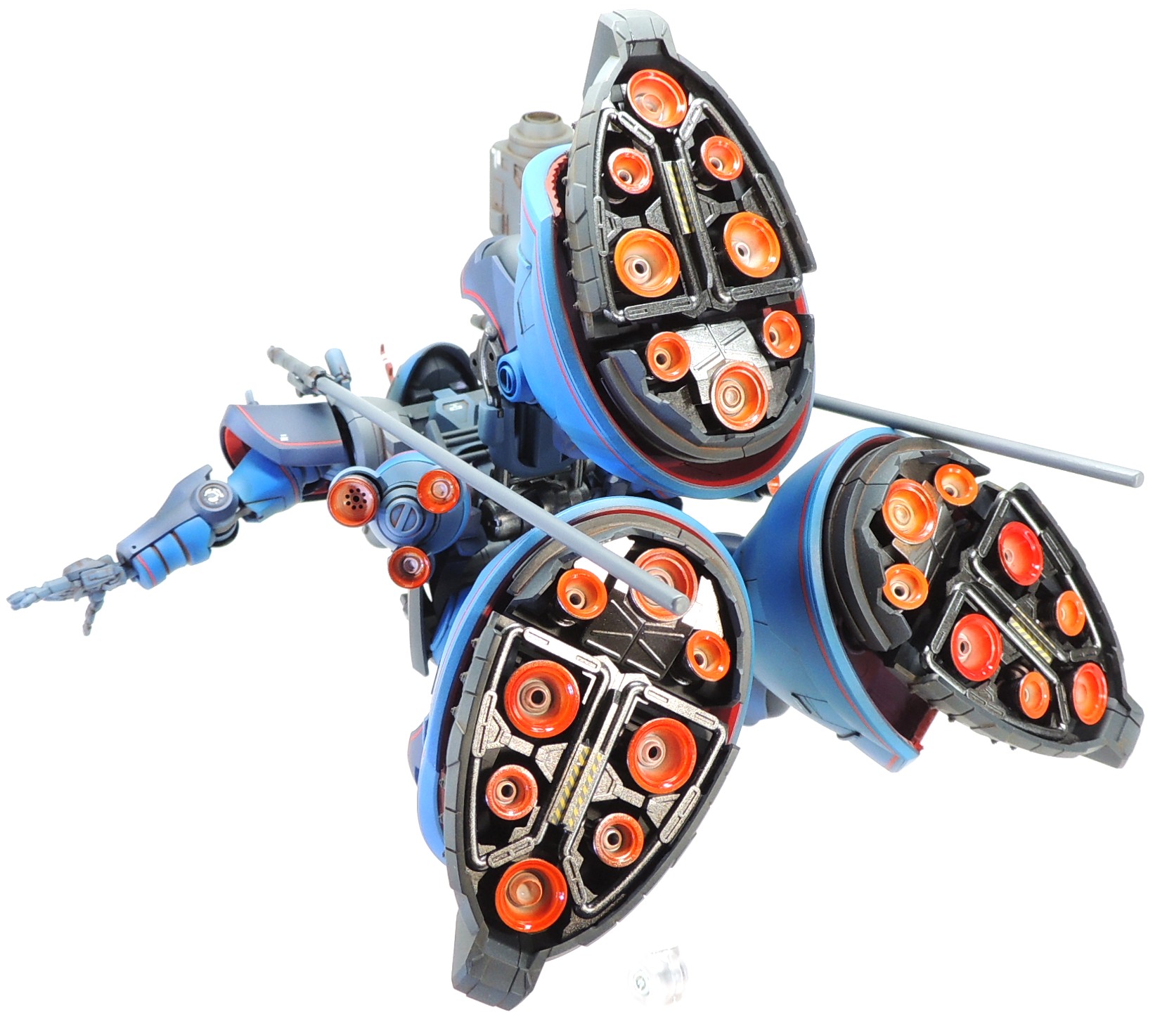 足裏や腰部のノズルは、光沢クリアをオーバーコートすることでツヤ有り塗装を行い、それ以外はツヤ消しで仕上げています。