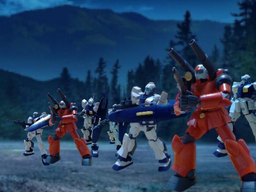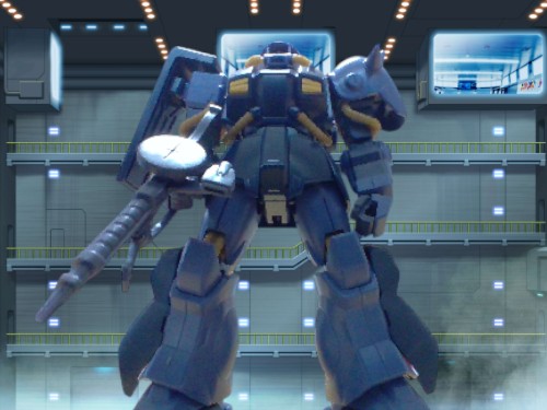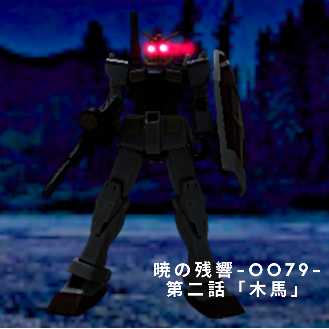 さらに、先程の爆音で、木馬の乗組員を目を覚ましたらしく、木馬の前方の前足とも見て取れる部分が開き、5機ほどのジムと、ガンキャノン2機が姿を現した。