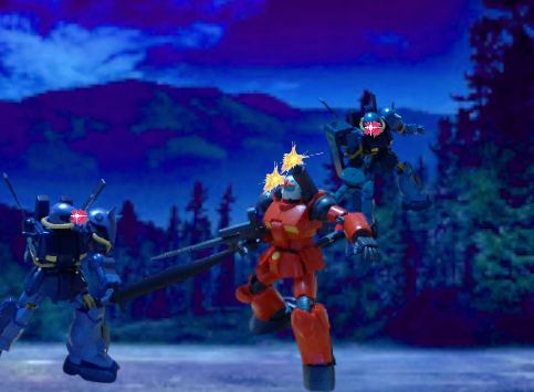 ヴァルター「俺が白い奴を引き付ける。その間に、お前らには白い奴をマシンガンとかで攻撃してほしい。ある程度ダメージが入ったら、俺のザクを自爆させる。」