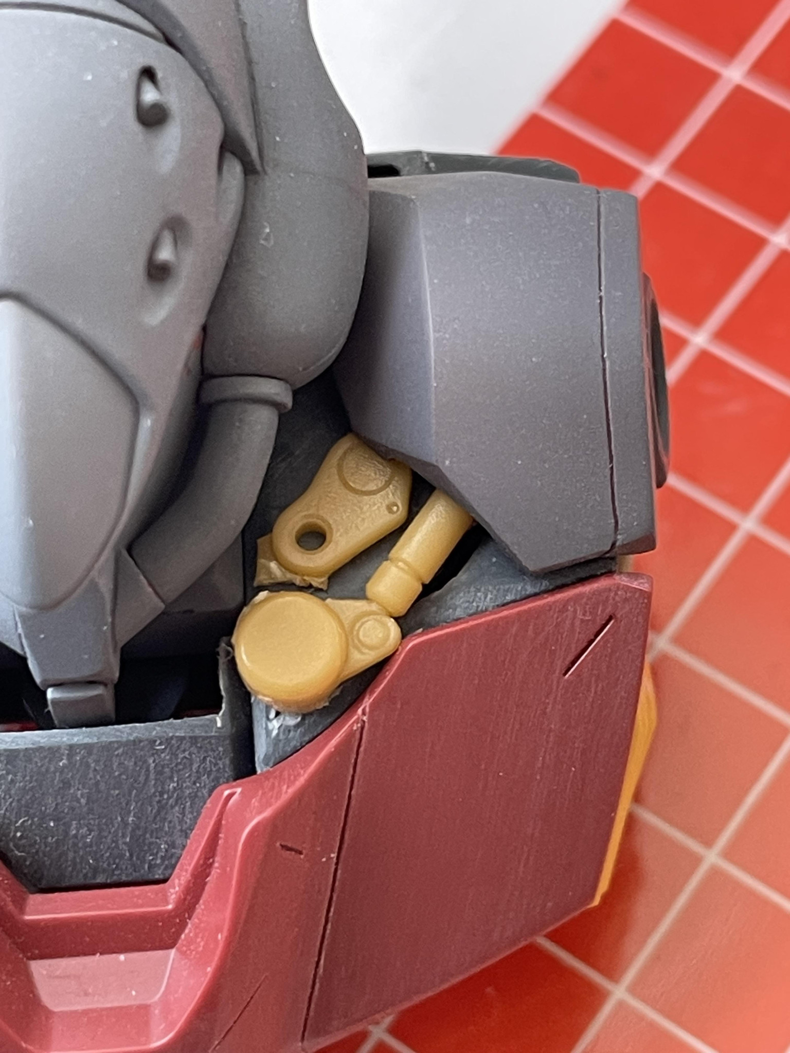 Xで投稿しましたが、人間でいう鎖骨に当たる部分には、アーティファクトのパーツを切り刻み貼付けてディテールアップ。なかなかいい感じになりました。