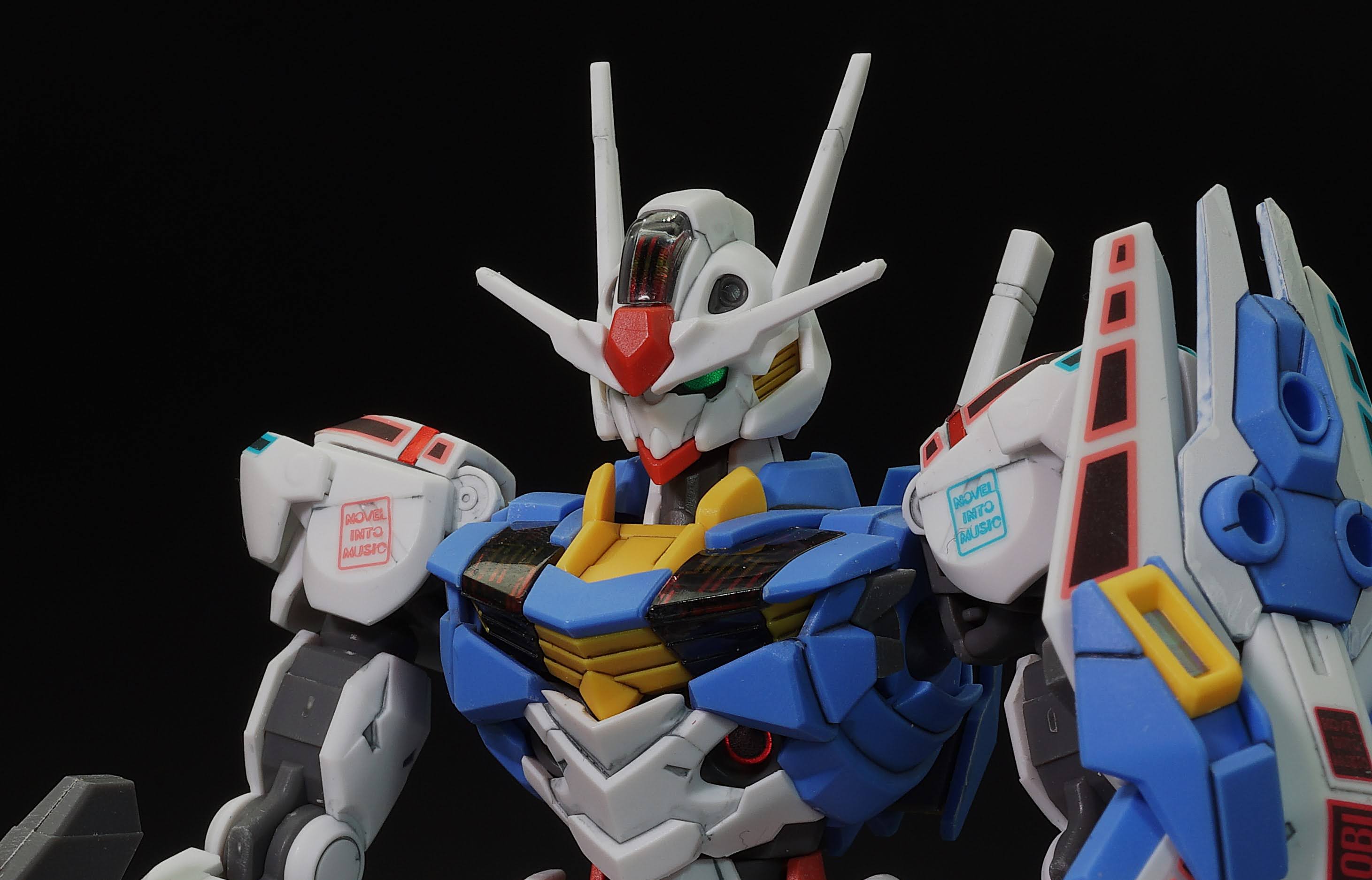 HGガンダムエアリアルです。つや消し吹いてYOASOBIのCDについてくるシールとホログラムシールを貼った簡単仕上げです。
