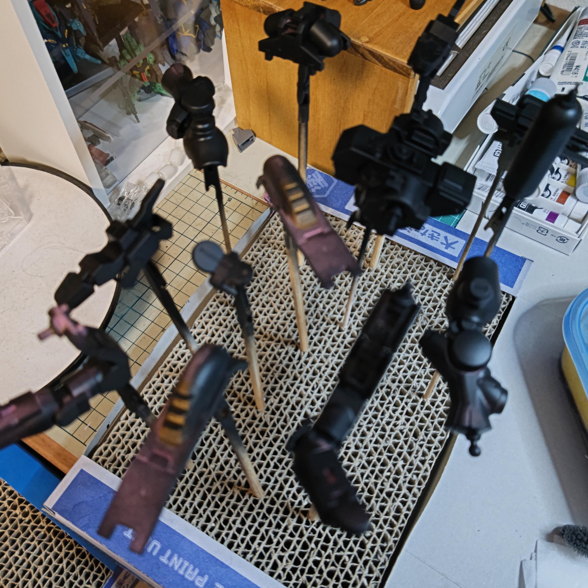 HGガンダムヴァーチェの筆塗り迷彩塗装です < 塗料 > 水…