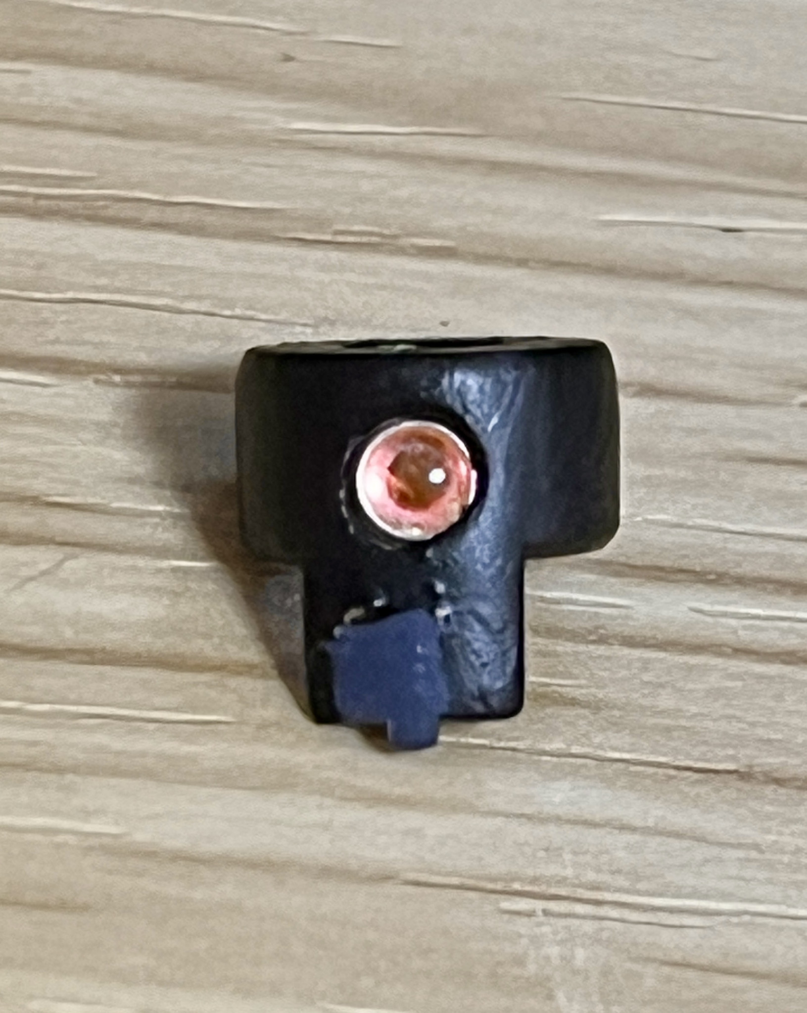 モノアイはwaveのHアイズの2.0mmの裏に同じくwaveの偏光シールのミラージュレッドを貼り付け、ハイキューパーツのSPプレートを組み合わせて作りました。キットのモノアイレールをピンバイスで開口して取り付けています