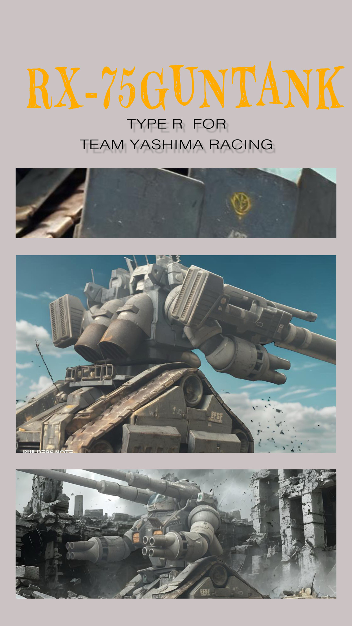 八州重工は、悪路走破性の高いガンタンクを改修してラリーへの参加を企画します。コアブロックを廃止して軽量化、エンジンと足回りを積み替え、上半身は前傾姿勢に変形し走破性を上げます。ホモロゲーションの要求する6カ月間に造られた12台に対し、軍はRX-75A1の形式名を与えました。