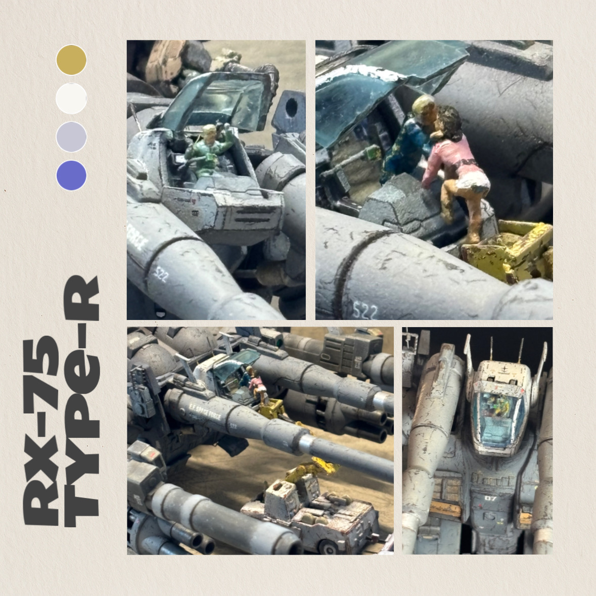 終戦を迎えて無用となったガンタンクの一部は、八州重工でRX-75Block6(通称typeRと呼ばれた)へ改修が進んだ。パリ~アフリカ・ラリーのホモロゲ―ションモデルでもある。コアブロックを廃して操縦系統を一本化、装甲の軽量化とエンジンの換装によって飛躍的な機動力を獲得した。車体前部へのサブクロウラ装備や、アサルトモードと呼ぶ走破性の高い前傾形態への変形機構が追加された。