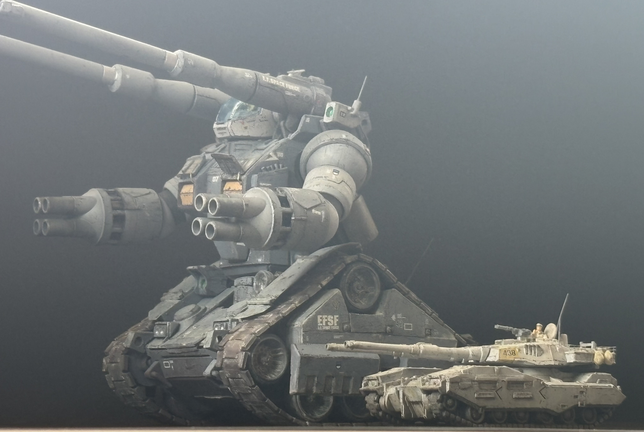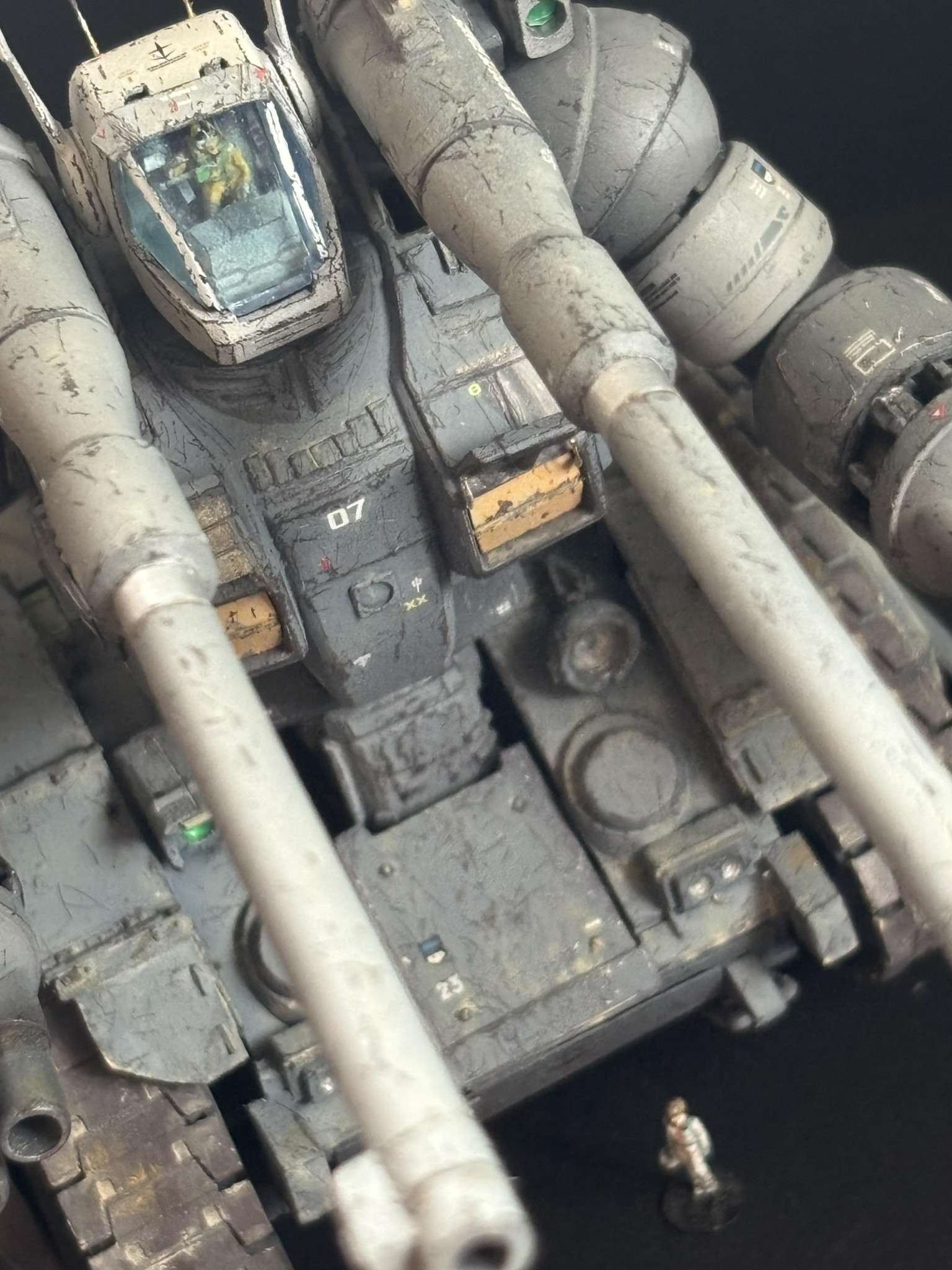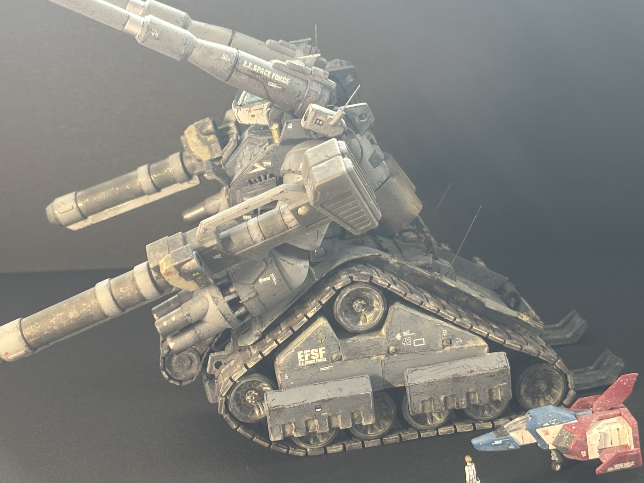 凄く格好良いガンタンクです。完成おめでとうございます。半端ないです!前傾姿勢で二度やられました。そしてスレッガーとミライ…妄想設定の作り込みと再現も素晴らしいです✨️