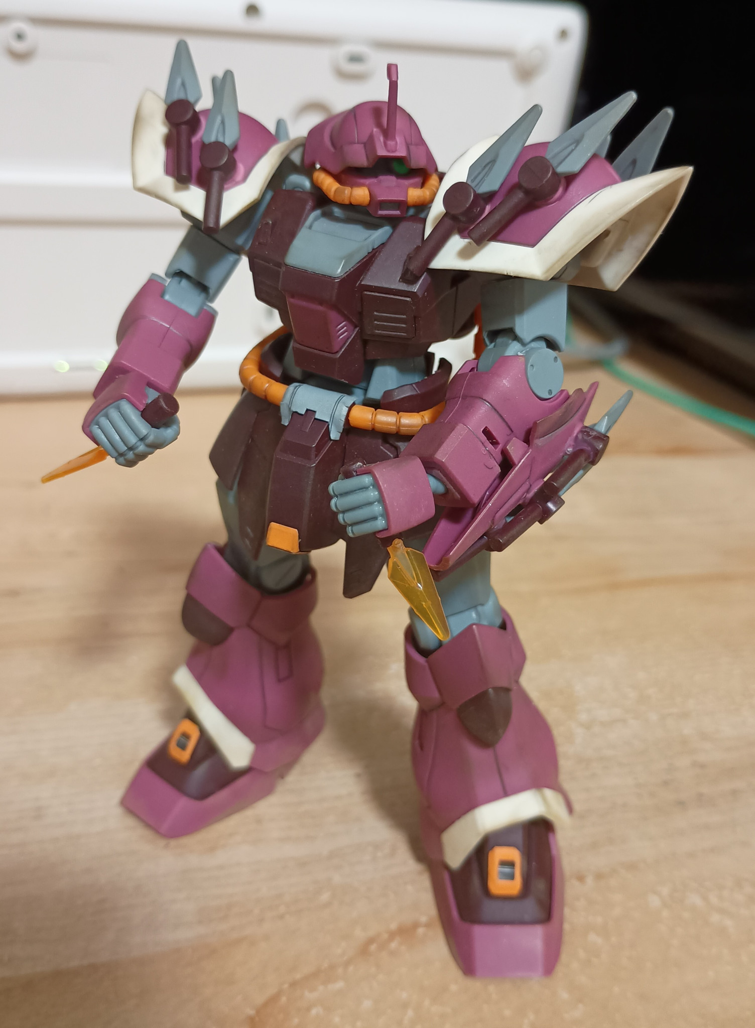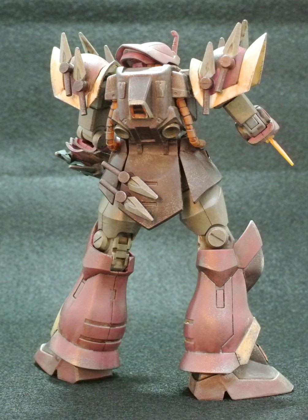 RGジオングのウェザリング加工です。 モノアイの蛍光ピンクと…