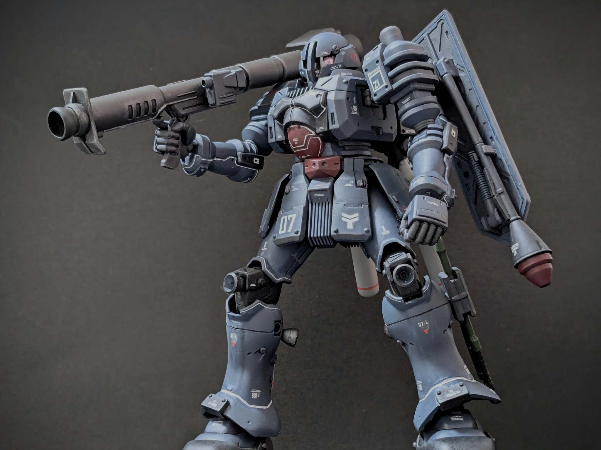 HGヅダをスタイル改修、全塗装、若干ウェザリング。ツィマッド社製らしい下半身ドッシリの量産機を目指しました。
