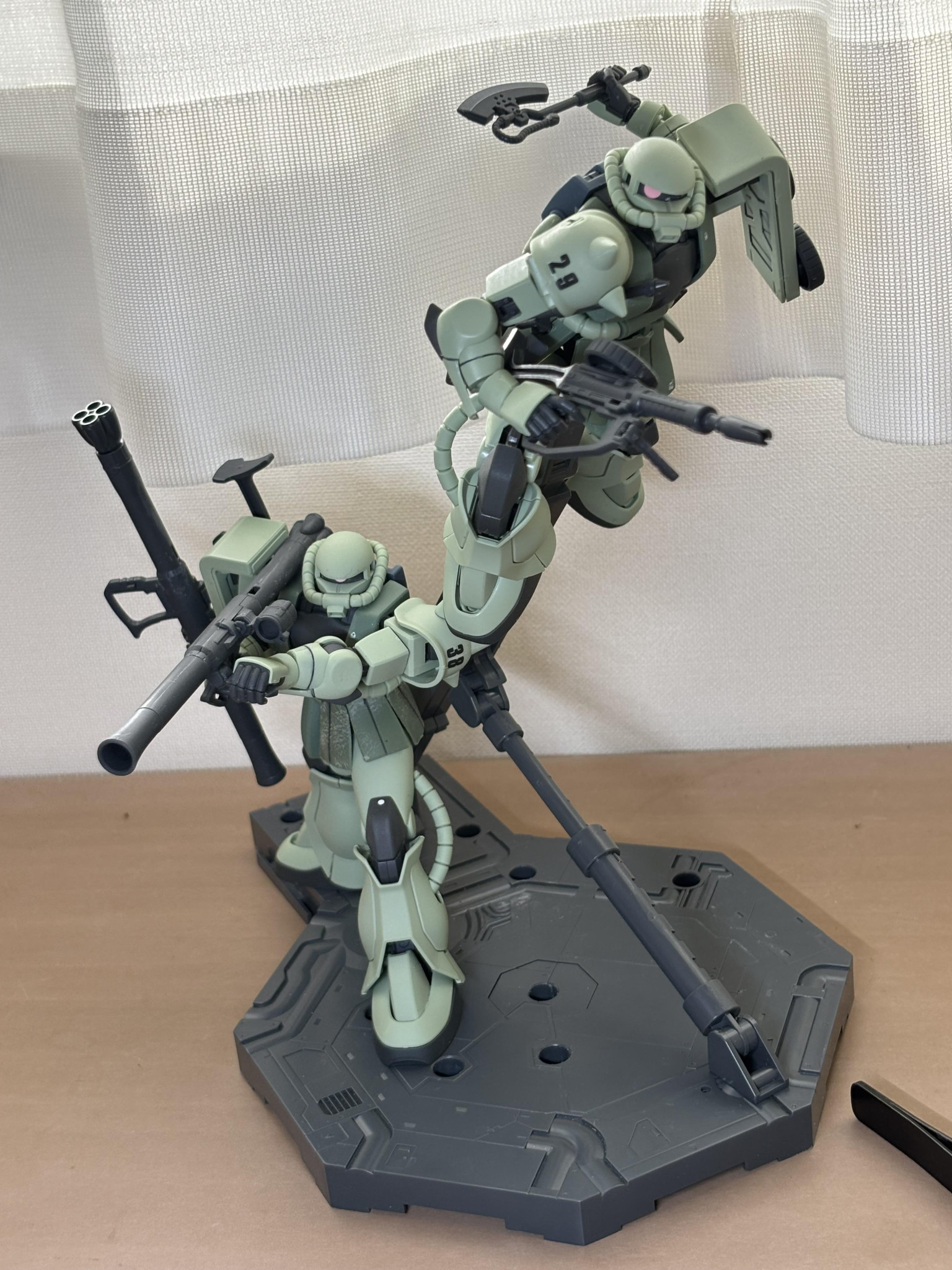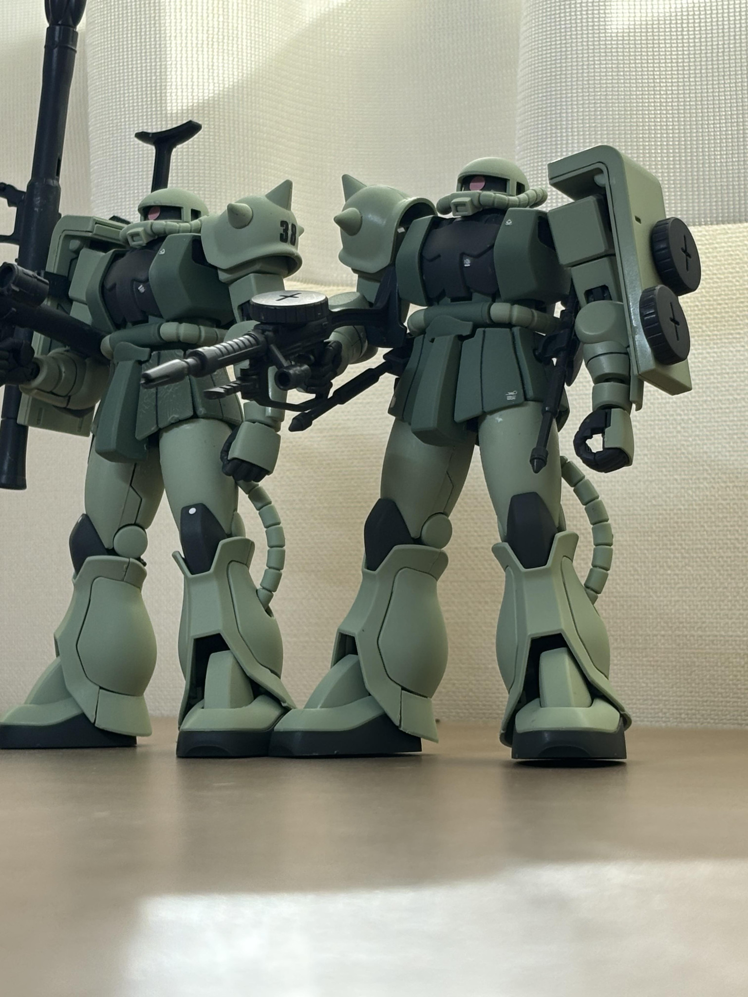 拵え、色等2機の立ち位置や、ポージングも良くて、見ていて気持ちの良いザクですね🤩👍✨