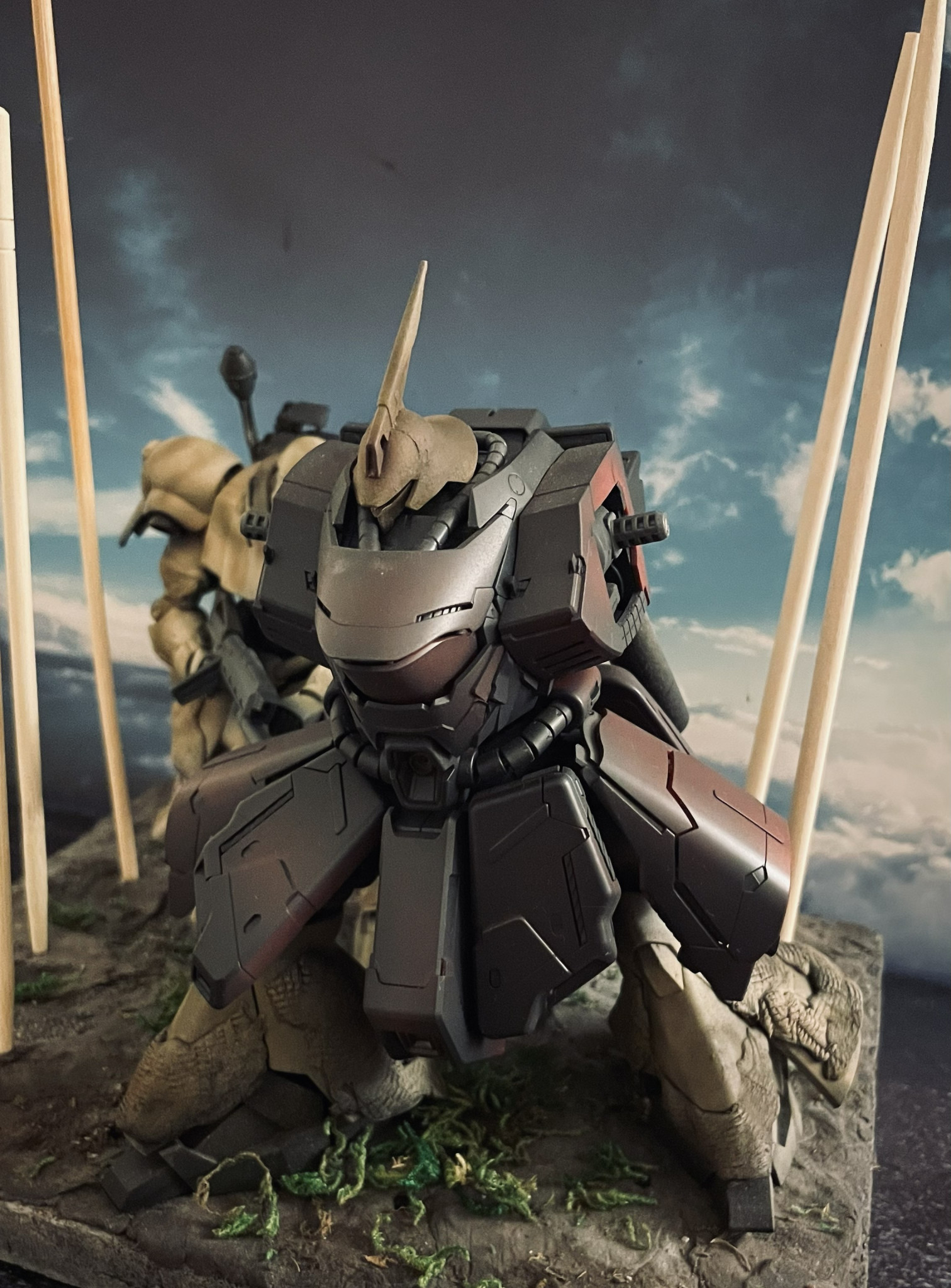ありがとうございます!!ゴブリンいいですよね!そうです。モビルスーツ不足に悩んだジオン残党軍が低予算で考案したモビルスーツとの設定でした。「意外」にも高性能を発揮し前線で大活躍した機体とのことでした。このずんぐりむっくりな感じがたまりません!!