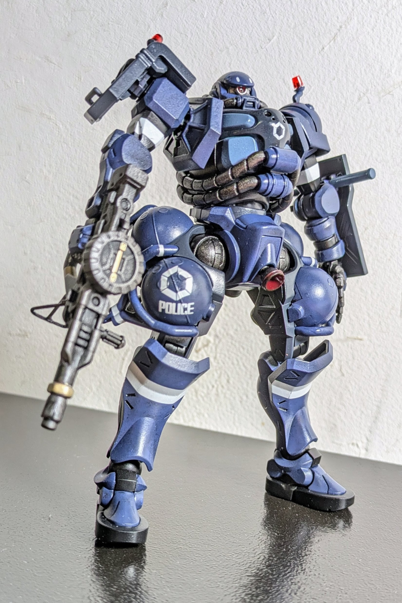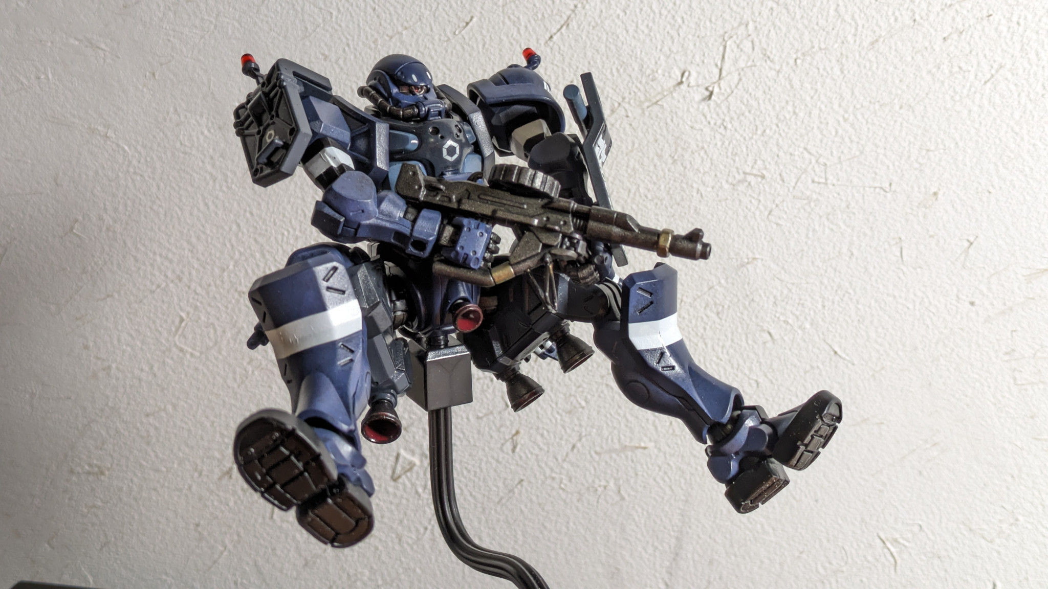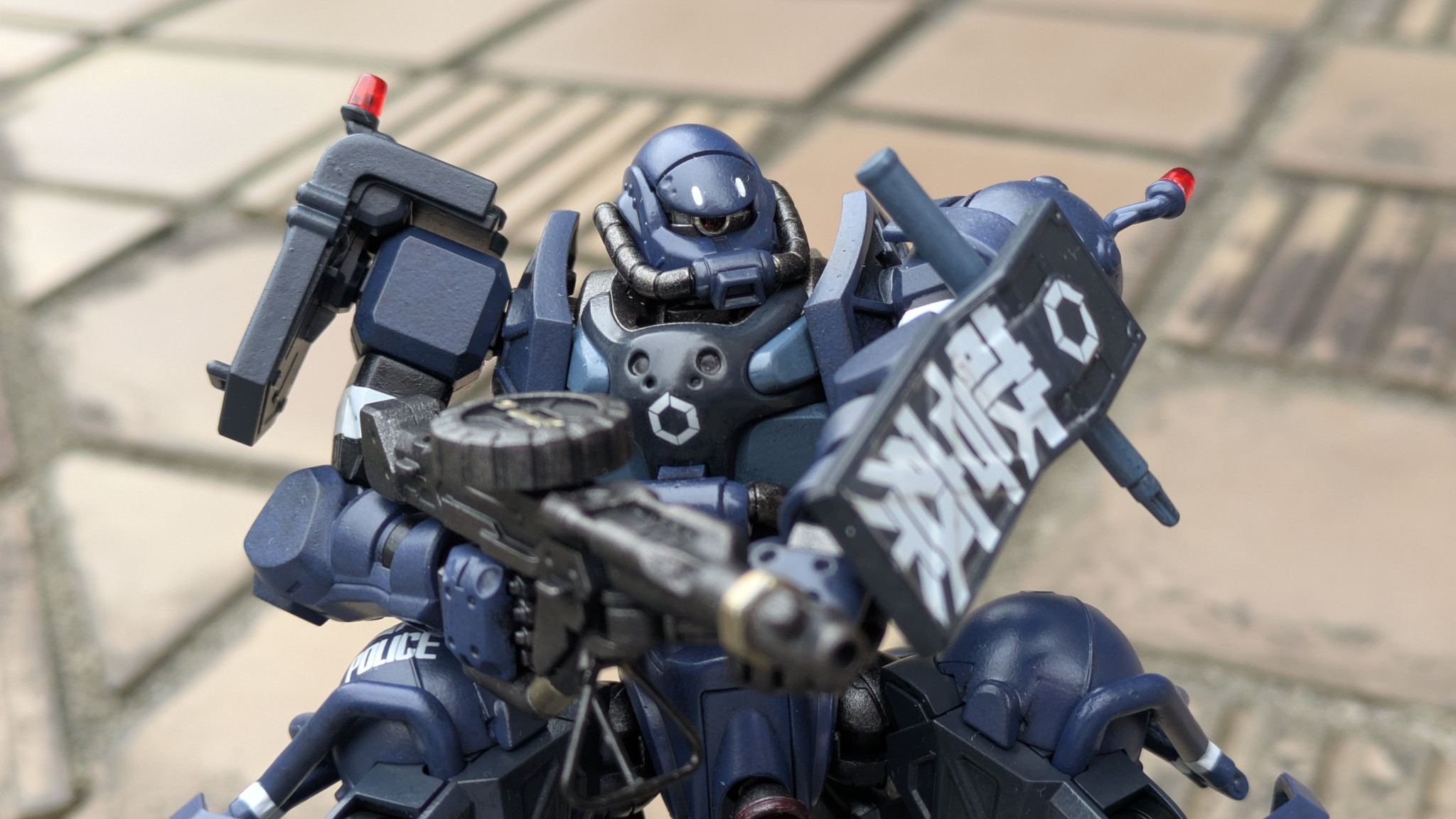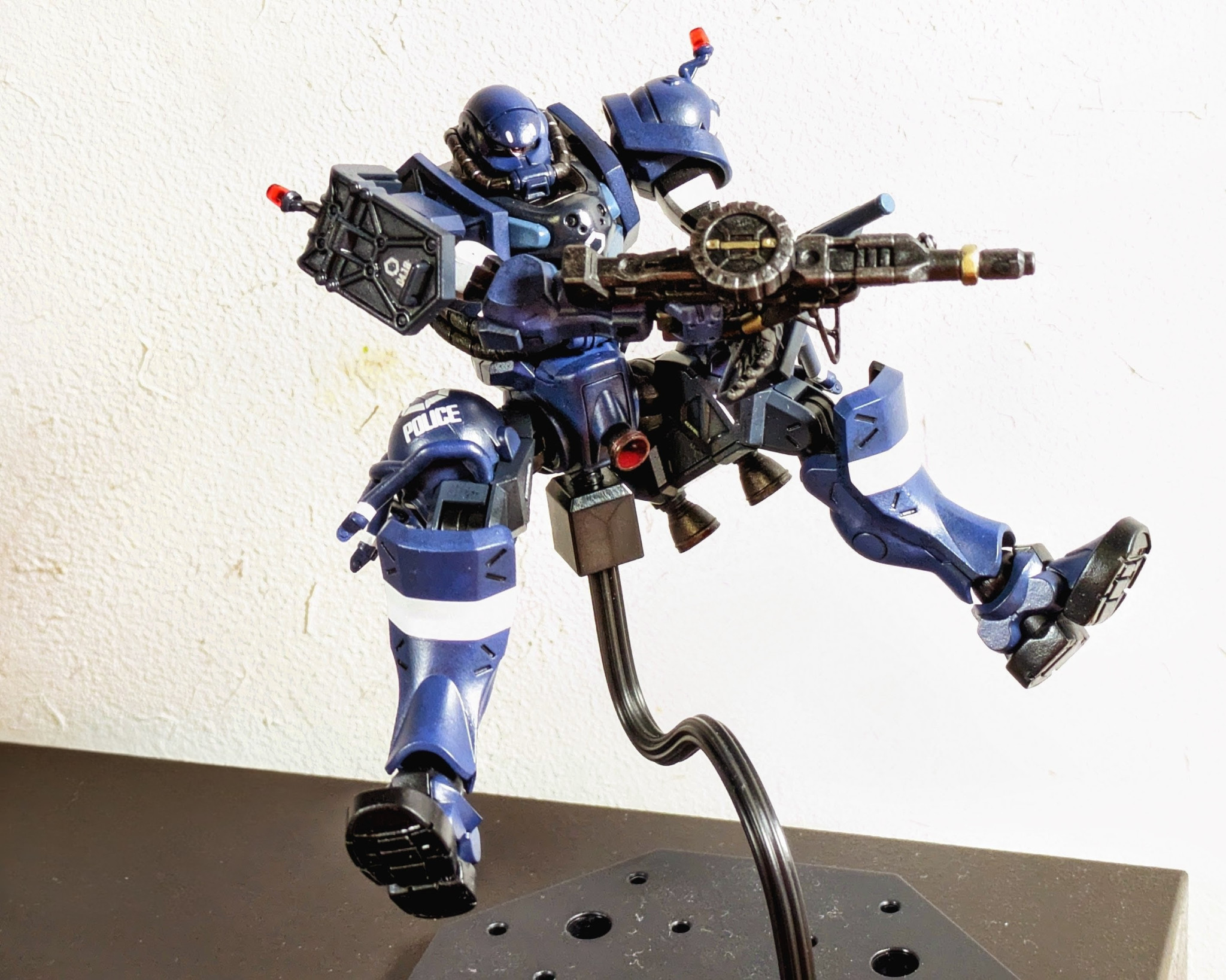 144/1HGの軍警ザクを作りました!パーツが結構小さく数も多いんで眼は疲れるはポロポロと床に落としては変な隙間に入り込んで無いかヒヤヒヤしたりとですが何とか完成に至りました(gundam-kao8)
