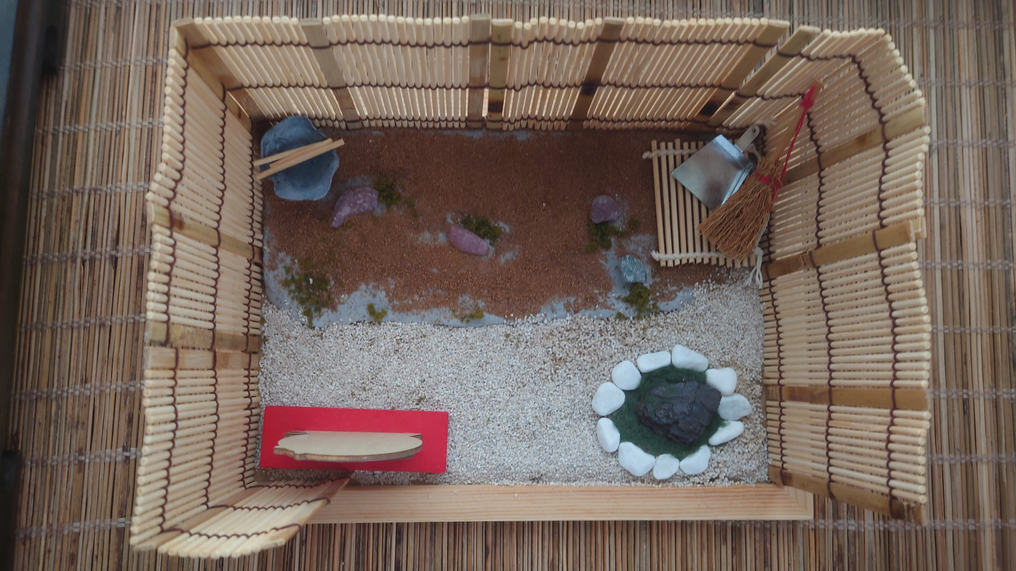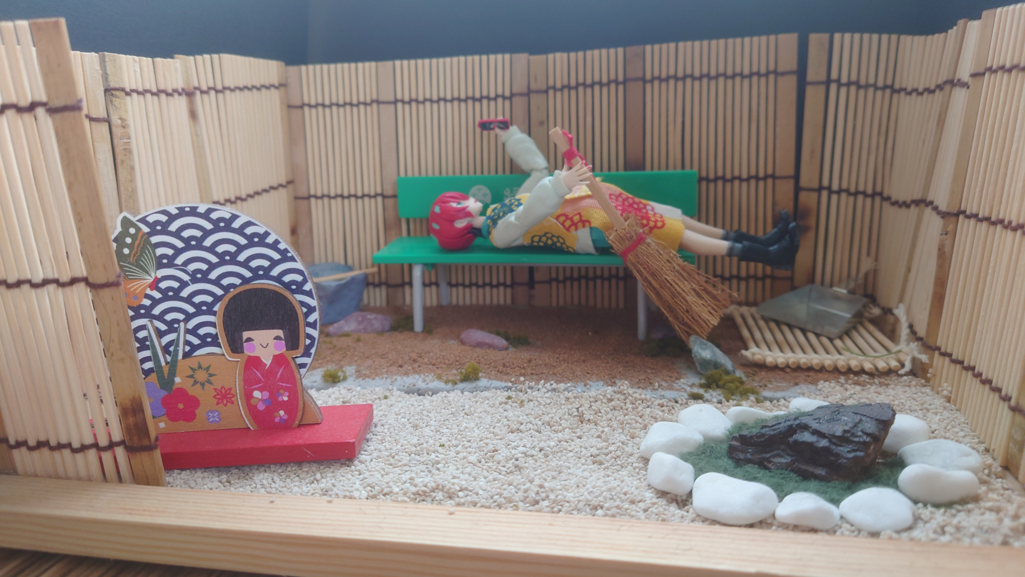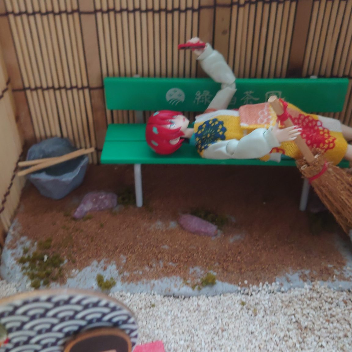 横からはこんな感じです 看板女の子とベンチと箒は100均で他は手作りです!