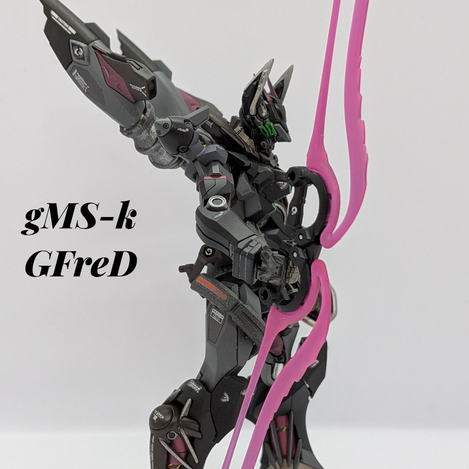 HGGFreDをオリジナルカラわーで作成しました。改修はアンテナのシャープ化とサーベルを1つに結合出来るように改造しました。
