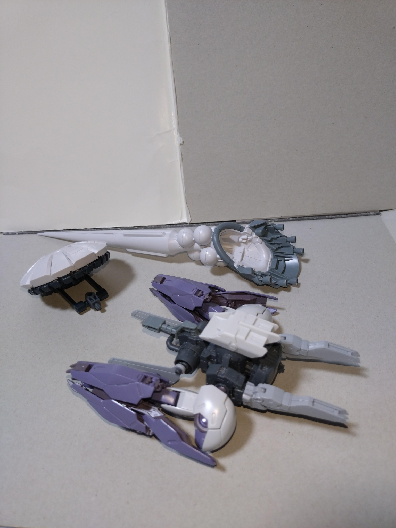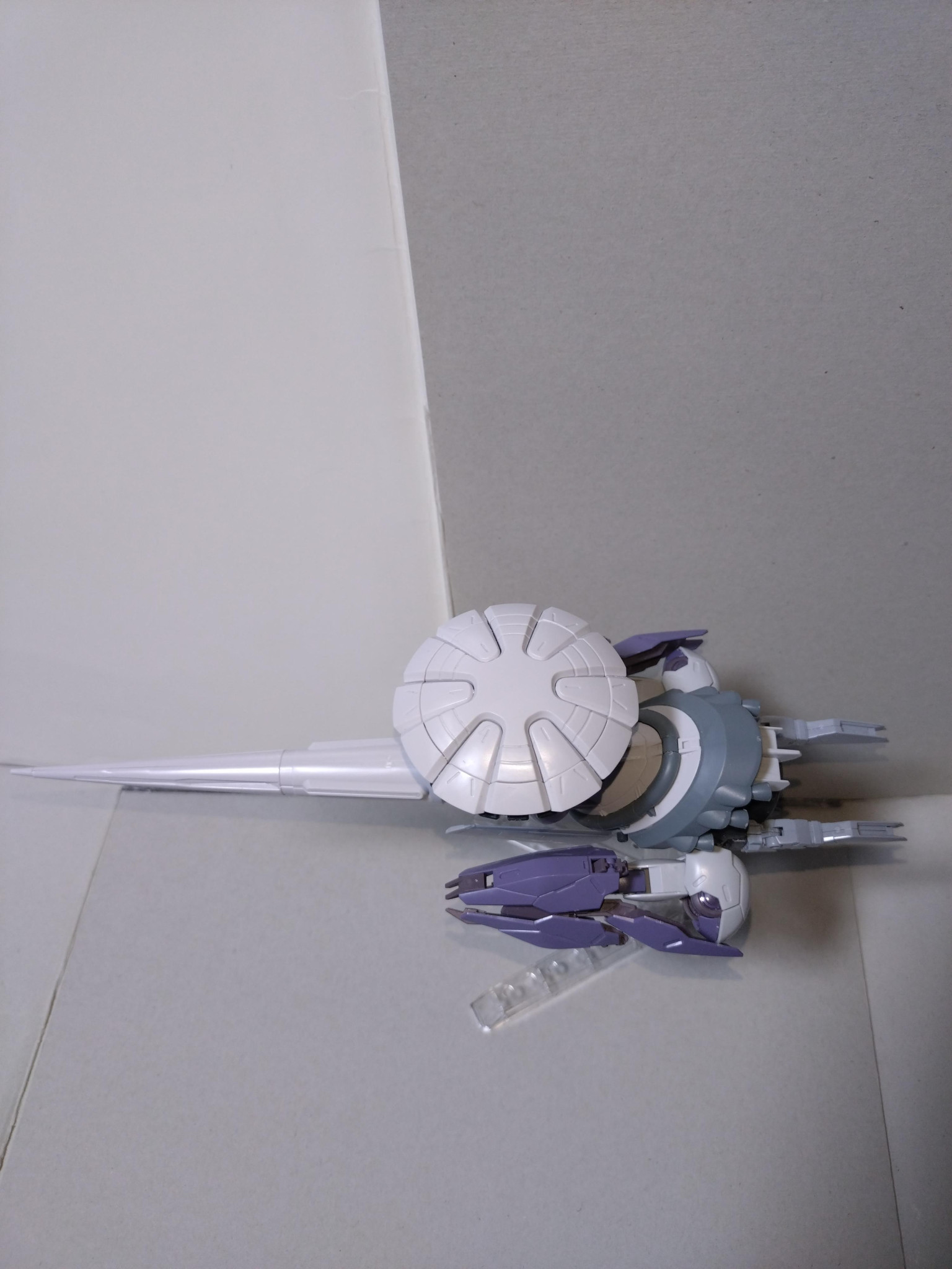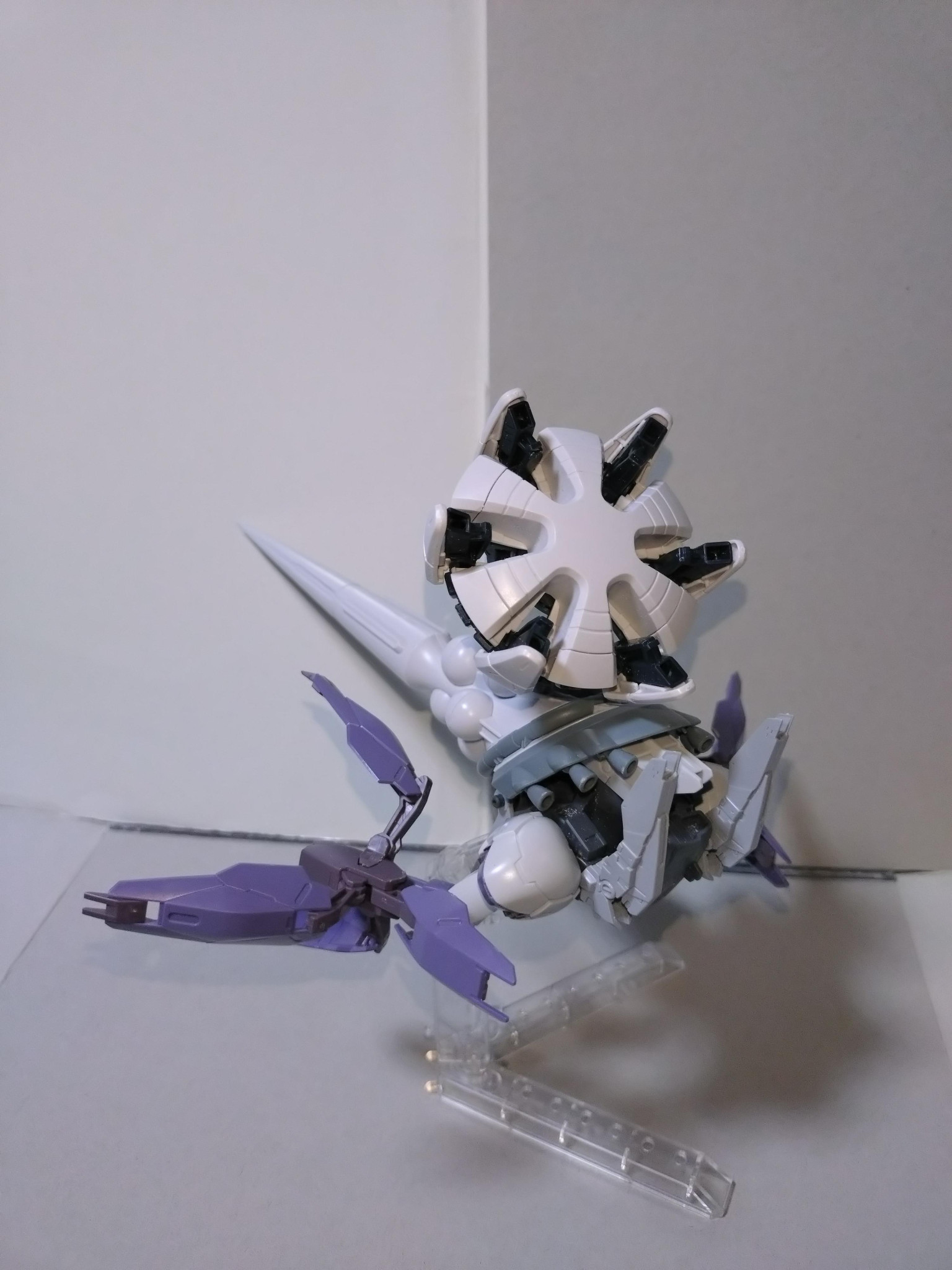 機体後部の黒いところは30MMオプションパーツ18、天面の白いところはガンプラバトルアームアームズのラジエーター。ランス部分との接続はハクジのグリップ部分を加工の上で流用。