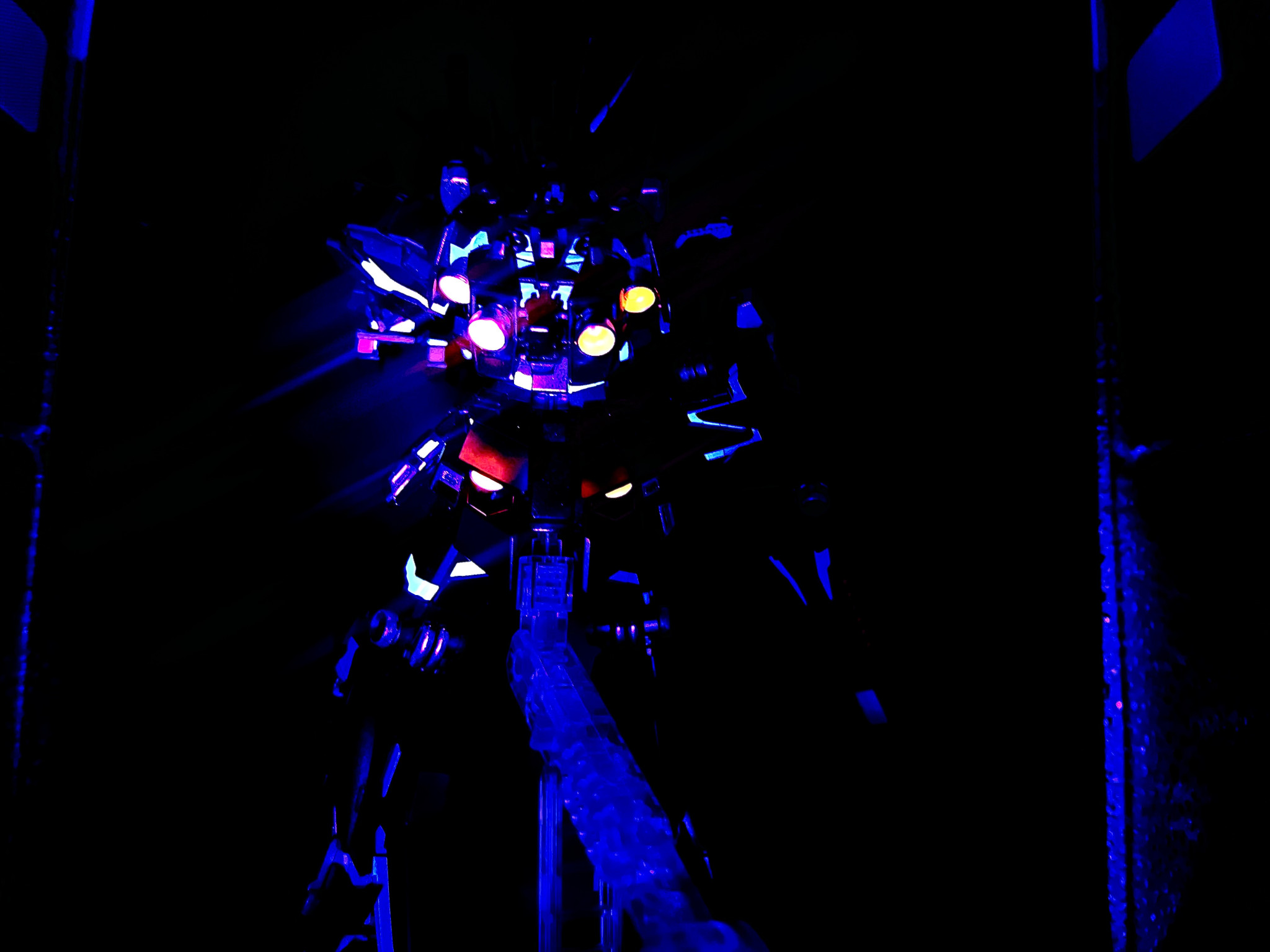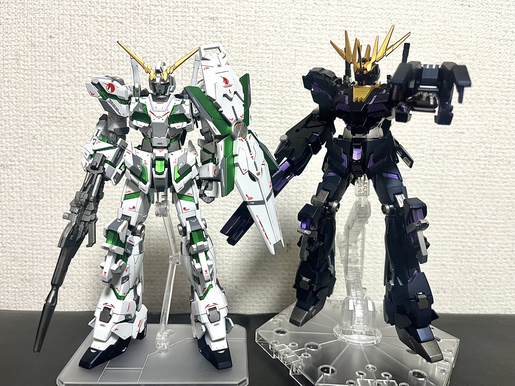以前のHGUCユニコーンガンダムと一緒に兄弟機ショット。黒い機体は暗い。