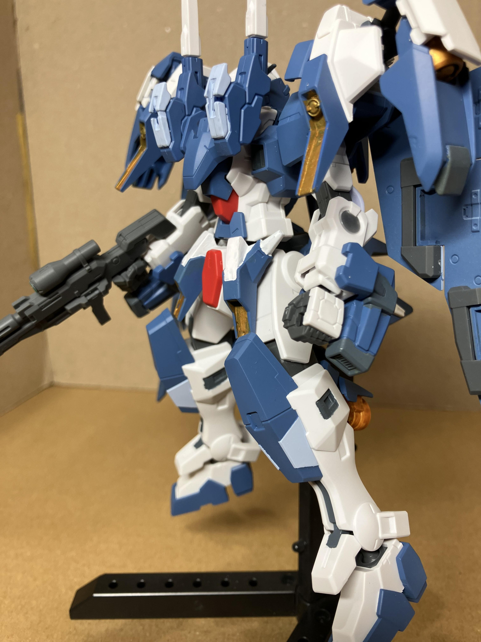 ままままんぼう HG 2025.10/27更新 ストームデュナメス風 80 32 いいねしたモデラー(32) 0 0 作品を共有 セイラマスオ氏の作例をイメージしてHGで作成しました。 拙いところは多々ありますが、それっぽい形になったので満足です。 アヴァランチユニットの色分けが大変でした。細かいところは異なるところがございますが、大体はセイラマスオ氏の作例を真似ています。腕部ユニットはアヴァランチユニットを一部削ってポン付けです。胸部は接着しました。ふくらはぎバーニアはデュナメスのパーツに切り込みを入れてかましています。ストームケルディムと一緒に。 ガンダムデュナメス コメント コメントをして応援しよう コメントにはログインが必要です ままままんぼう 2025年6月にGUNSTAを始めました。 分からないことも多いのでご容赦いただけると助かります。 子育ての合間に趣味の範囲でガンプラを作ります。 幼児が2人いるため、限られた時間の中で、自分の作りたいものを作れる範囲で作っています。 合わせ目は消しませんし、表面処理もしませんし、サーフェイサーを吹かないことが多いです。 技術力は高くありませんので、設定通りのものは作れませんが、〇〇風の作風で自分なりに楽しく作っています。 温かい目で見守ってくださると嬉しいです。 自宅に飾るスペースが少ないので、作った作品はジャンク品としてフリマアプリで出品しています。 これまで作ったもの(売れたもの含め) 記憶に残るよう投稿してみようと思い始めました。 よろしくお願いします。 8 ストームケルディム風 セイラマスオ氏の作例をイメージしてHGで作成しました。 拙い… 7 リガズィカスタム風 リガズィをベースにGディフェンサーやインジャ、プラ板等でリガ… 11 リガズィード風 リガズィをベースに、ゼータのパーツを主にリガズィード風にしま… 9 アーチャーハルート ハルートがアリオスとガンアーチャーを合わせたような存在なので… ままままんぼうさんのページ この作品をお薦め作品に設定する Please login to update your profile! Please login to update your profile! Please login to update your profile! Please login to update your profile!