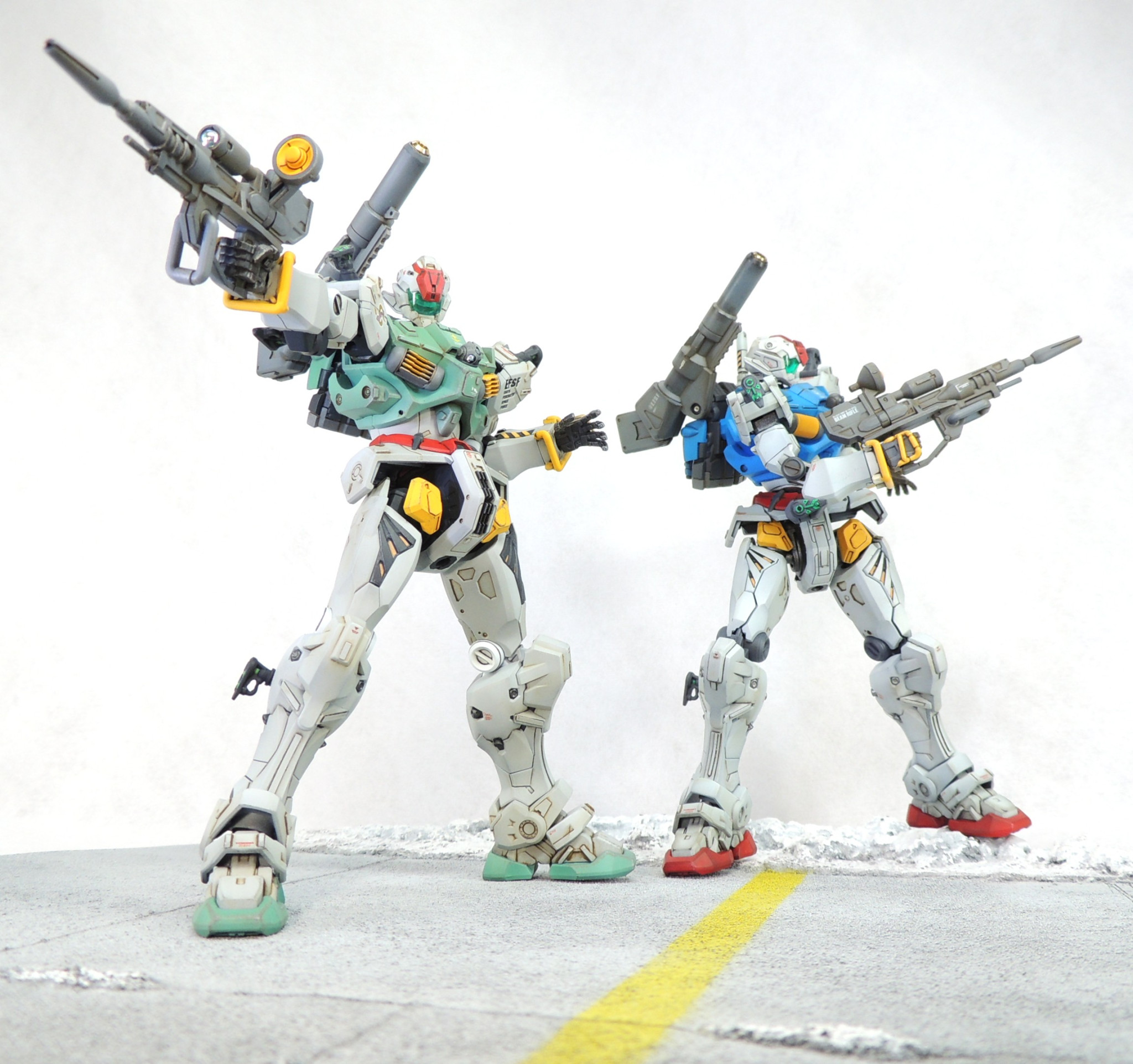 ジオン軍の「M.A.V.(マヴ)戦術」の思想を取り入れて活躍した連邦軍のエース機という妄想で、セイラ機と並べてみました。