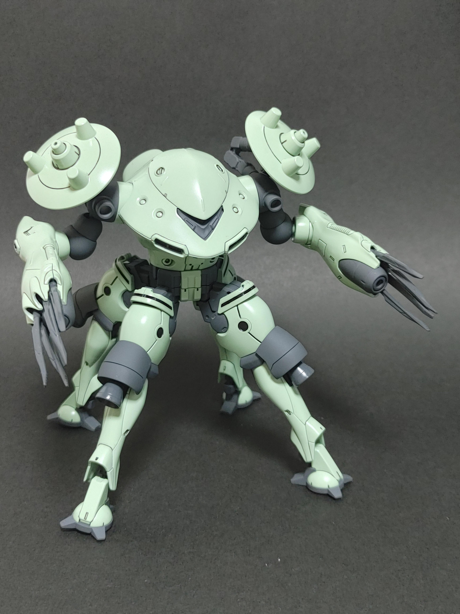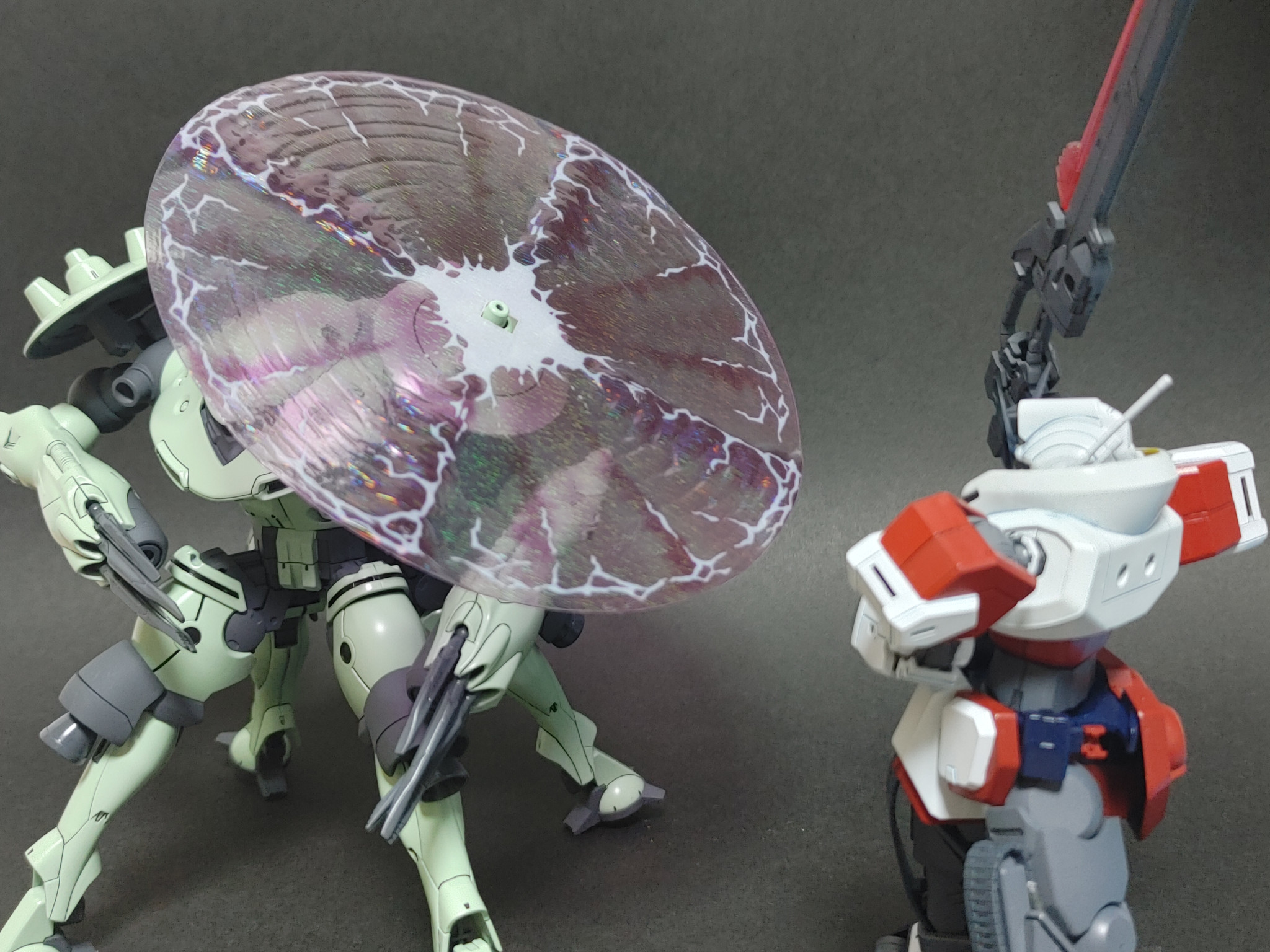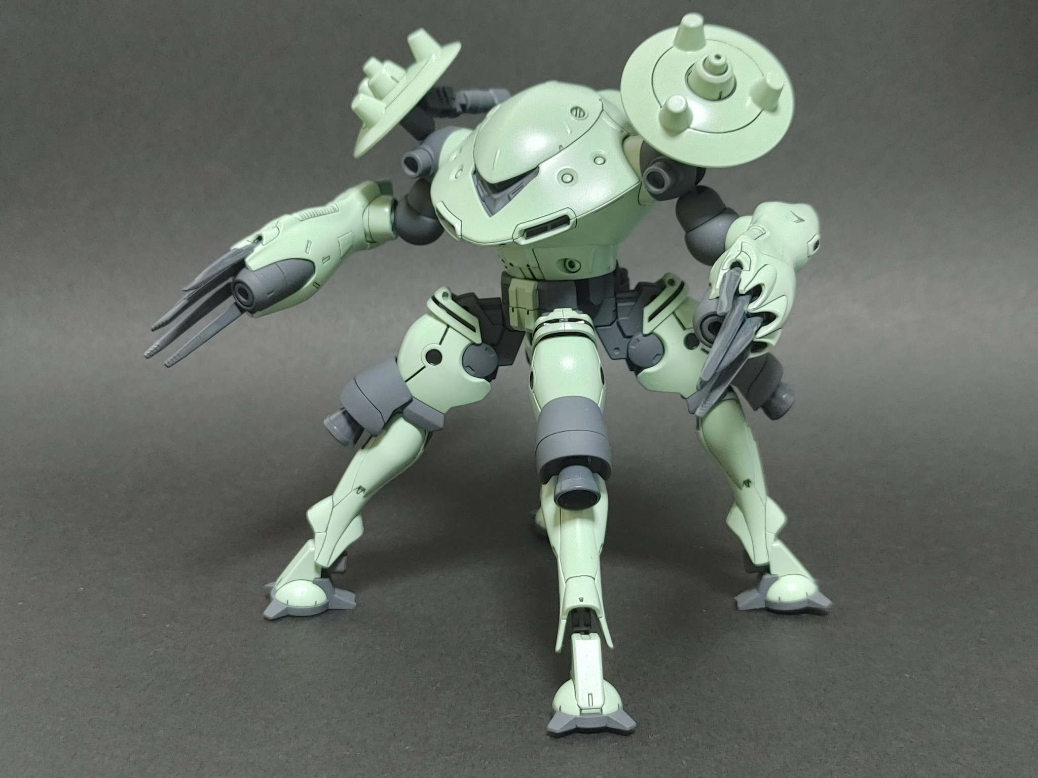 特徴は両肩のシールドから発生させたビームを回転することで張るビームシールド。(ゲルググのナギナタ回転と同じ原理)