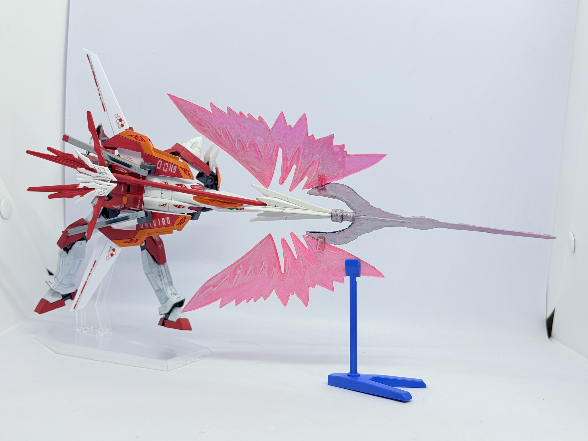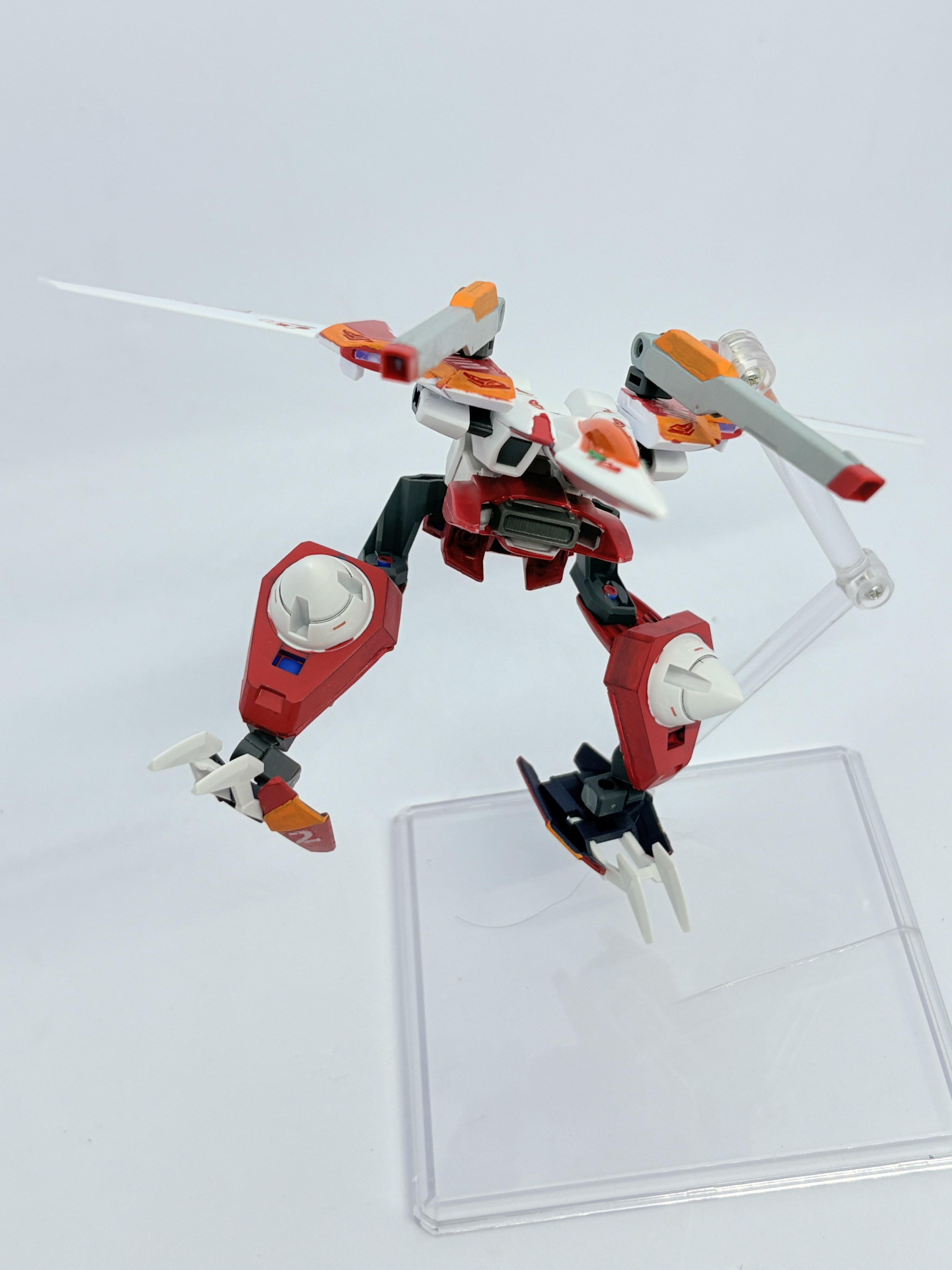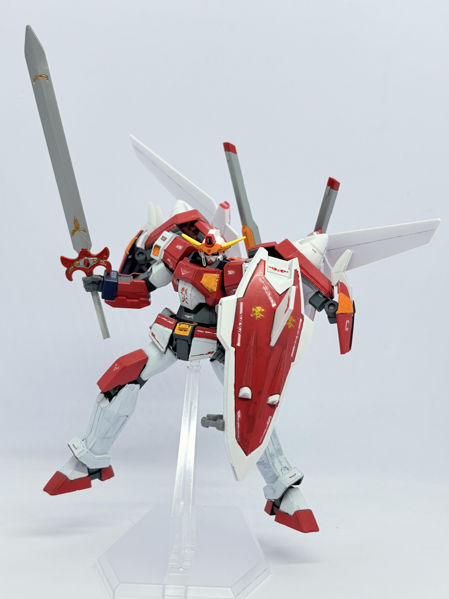 N9バトラーから一転真っ赤に染まった機体。どことなく技や武器の名前・腹部の烈火という所に彼の厨二的な要素は残しつつ、自分が1人のガンプラビルドファイターとして戦う為に00を視聴し採用した形の機体です。