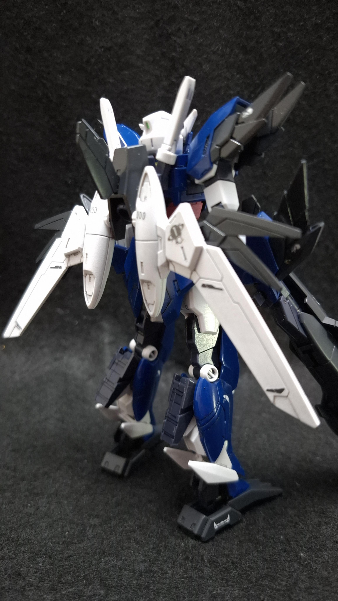 このキット最大の弱点はフィンザンバー。バックパックのウイングにはめ込むというより形を合わせて引っかけてあるので割と簡単に落ちてしまいます。プロポーションの方はアーマーが横長なので結構どっしりして見えますね。