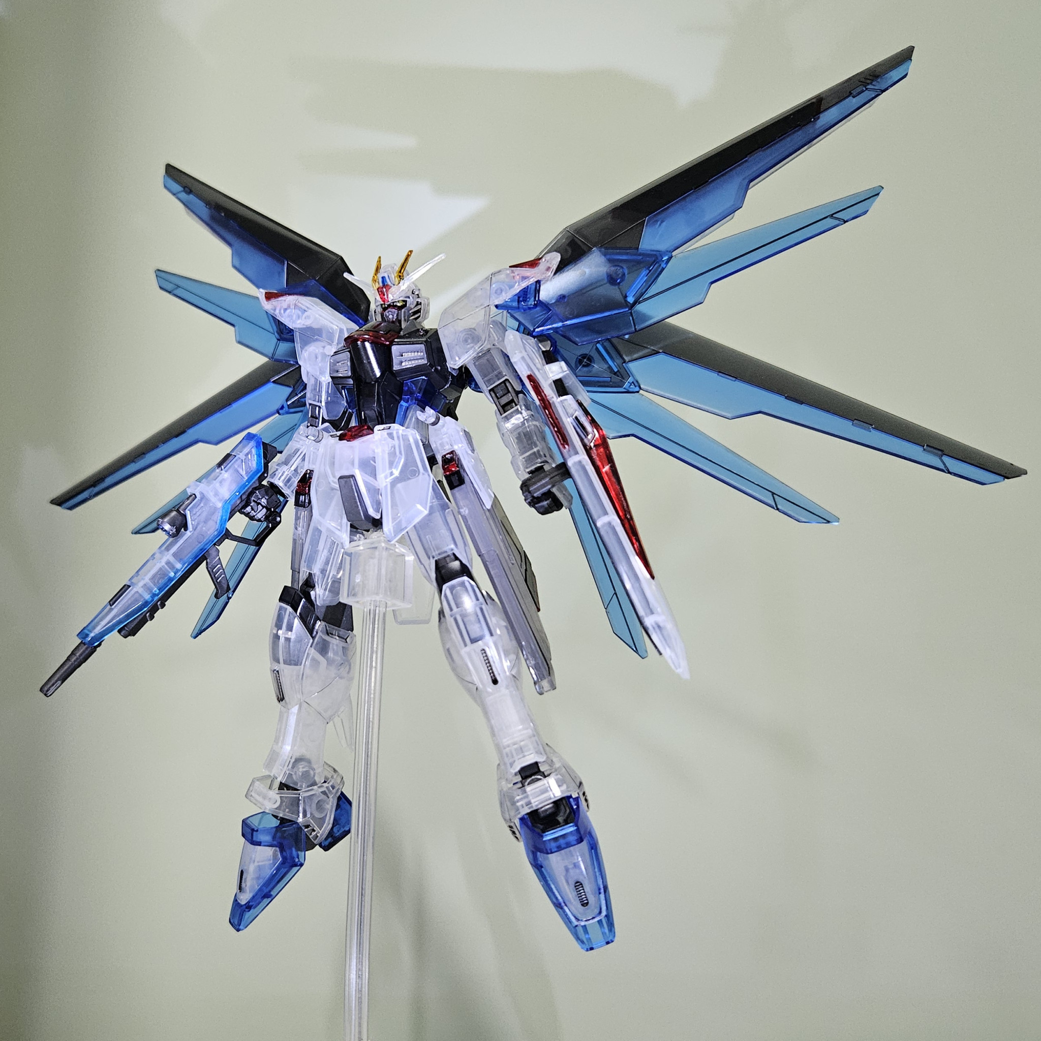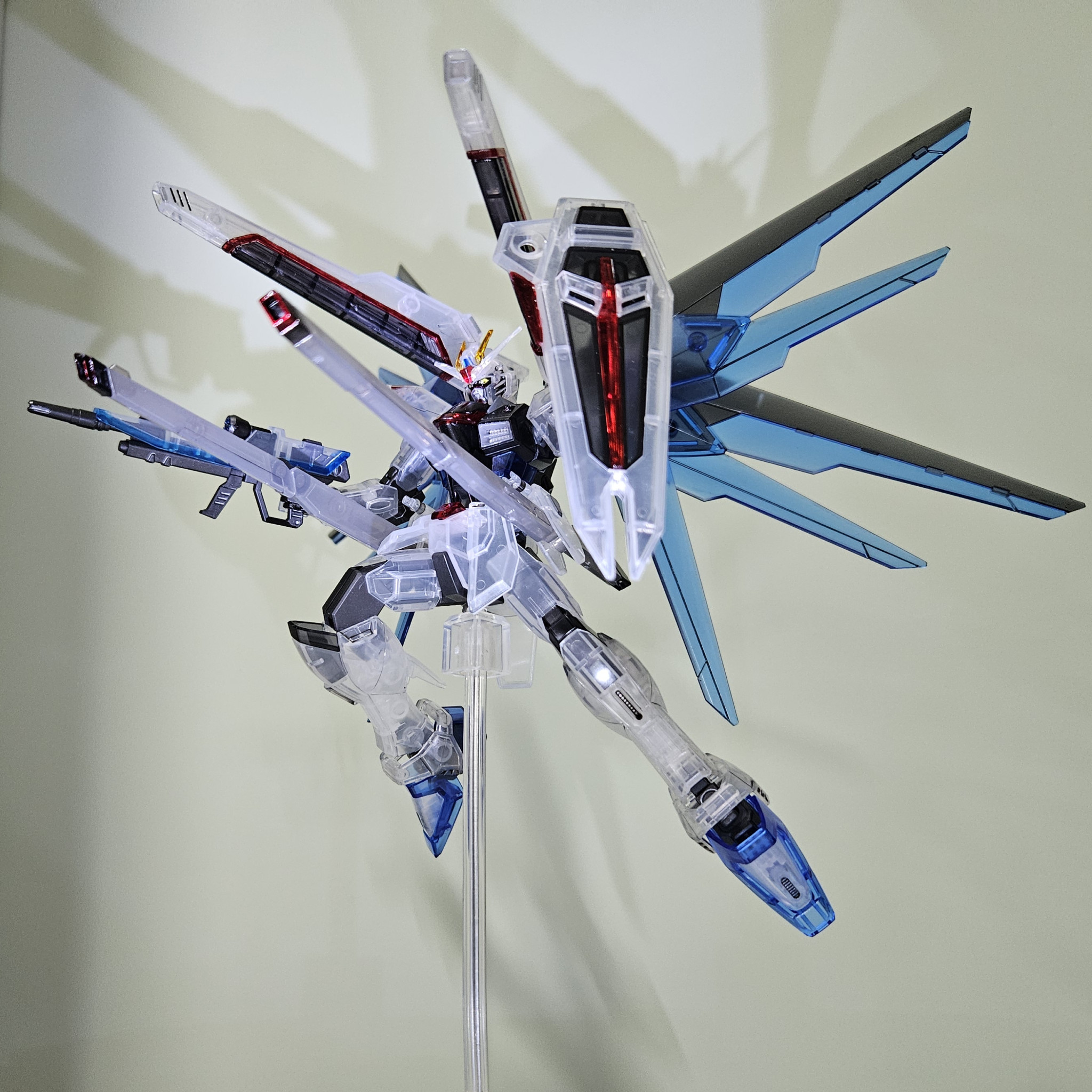 こんばんは クリアカラーのフリーダムも綺麗ですね 塗装しなくても楽しめますね なにより職場にガンプラ飾れるのが羨ましいです ありがとうございます