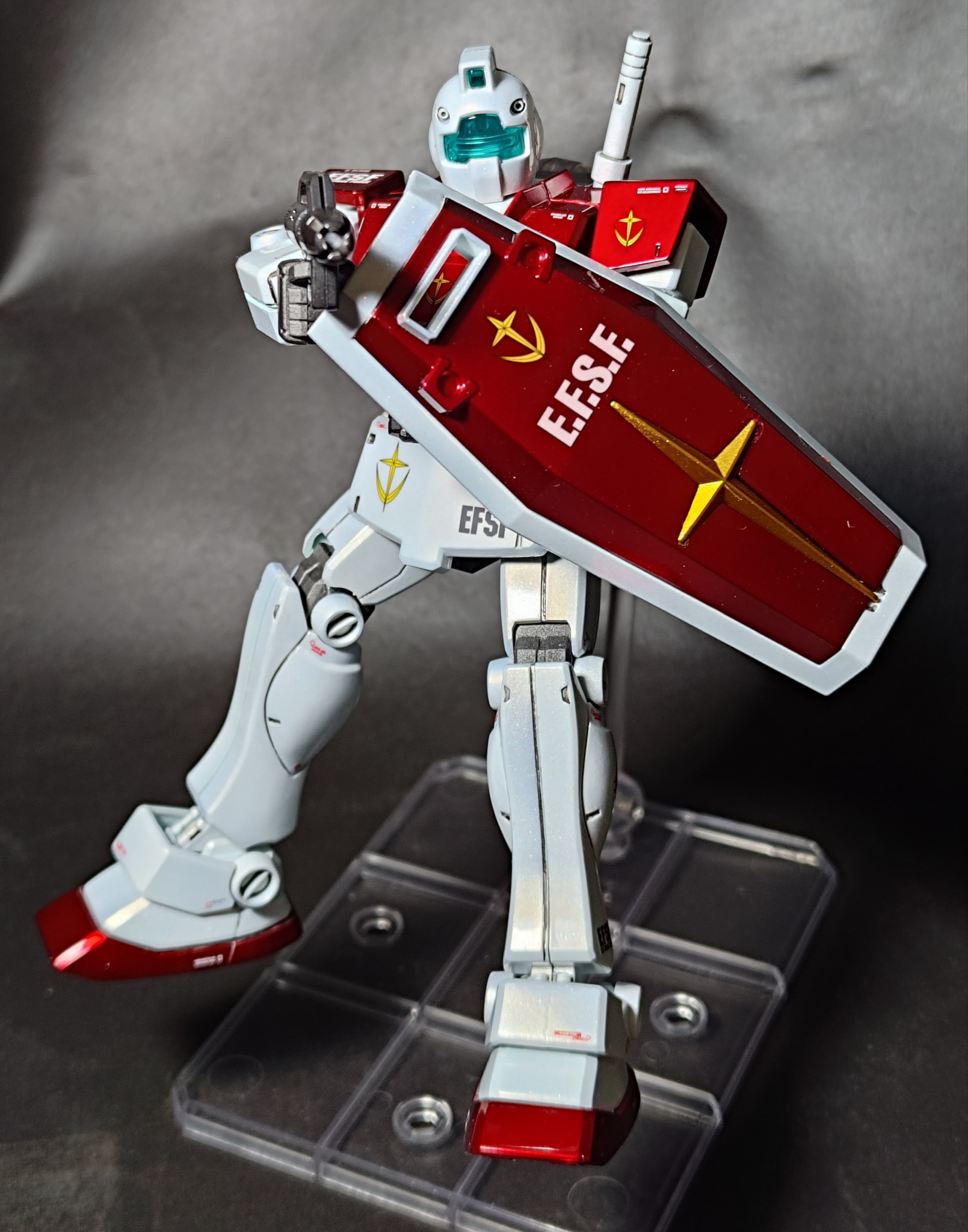 HGジムをなんちゃってチタニウムフィニッシュ風に塗装しました。