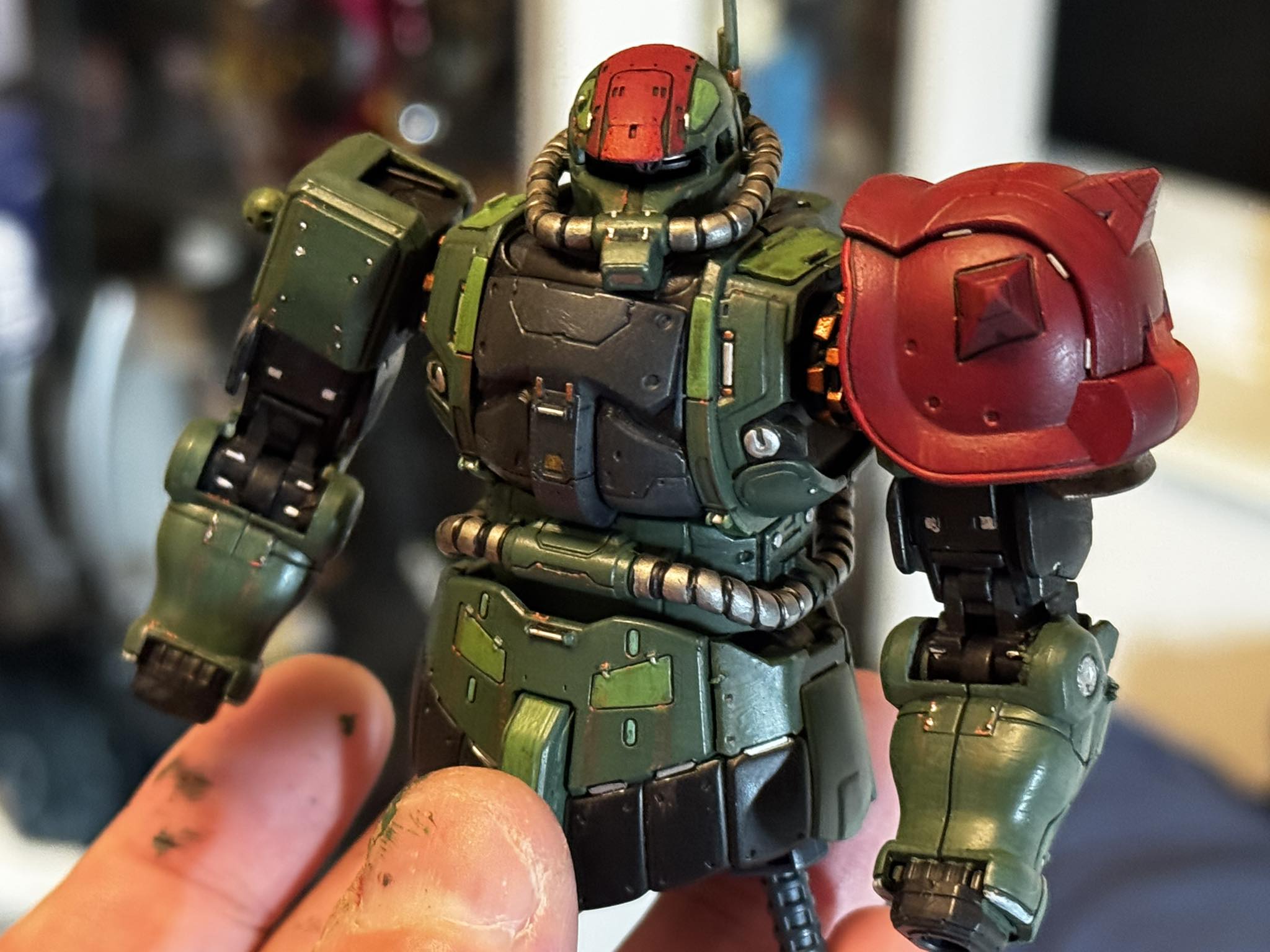 カニだいすき HG 2025.10/27更新 レッド・ウルフ隊 456 142 いいねしたモデラー(142) 7 2 作品を共有 「復讐のレクイエム」のレッド・ウルフ隊のザクをまとめて作りました。 ケイル機。武器を構えるために肩の接続をちょっとだけいじっています。チャブス機。カラーリングがカッコよくて好きな機体です。差別化したくてルショーン機にはバズーカを持たせました。ソラリ機。案外シールが役立ちまくりで良かったw基本的にはシタデルとファレホの筆塗りです。金属部分は韓国土産の謎マーカーと、AKのマーカーを使っています。ちょっと塗ってはトップコートでセーブして、の繰り返し…せっかくなので並んだやつを…モノクロにしてカッコ良くしてみました笑並べてみました。その2 ザク 復讐のレクイエム ガンスタを最近知ったので投稿してみました。 コメント コメントをして応援しよう コメントにはログインが必要です ろぶやん 4週間前 コメント失礼します。 全機揃うと壮観ですね!😆 ハイディテールを活かした細かい塗り分けながら、しつこくないのが絶妙です。 ストックを肩に当てるスナイパーライフルの自然な構え、画角や陰影も素晴らしい!好みです😃 カニだいすき 4週間前 ソラリ機を作ったら揃えたくなりまして笑 やはりザクは並ぶと良いですね〜 カニだいすき 4週間前 レクイエムは映像がとても素敵だったので、カッコ良くザクを撮影したくて作りました^ ^ 4機揃いだと上手くiPhoneのカメラに収まらず… 少し並べてみたやつを追加してみました。 meg-ocero 4週間前 ありがとうございます(zaku-kao2) 良いですね!僚機に背中を預けて警戒する姿、堪らないですね🤤 カニだいすき 4週間前 信頼しあう戦友の姿はグッときます meg-ocero 4週間前 これだけ揃うと壮観ですね(zaku-kao2)出来れば全機並んだところも観てみたいですね😁 空をバックにした感じの撮影と陰影の入り方もリアル感があって素敵です! 薩摩模型塗装工務店 4週間前 映像を切り抜いた見たいで凄いです✨ カニだいすき カニ美味しいです。 よろしくお願いします。 この作品をお薦め作品に設定する Please login to update your profile! Please login to update your profile! Please login to update your profile! Please login to update your profile!