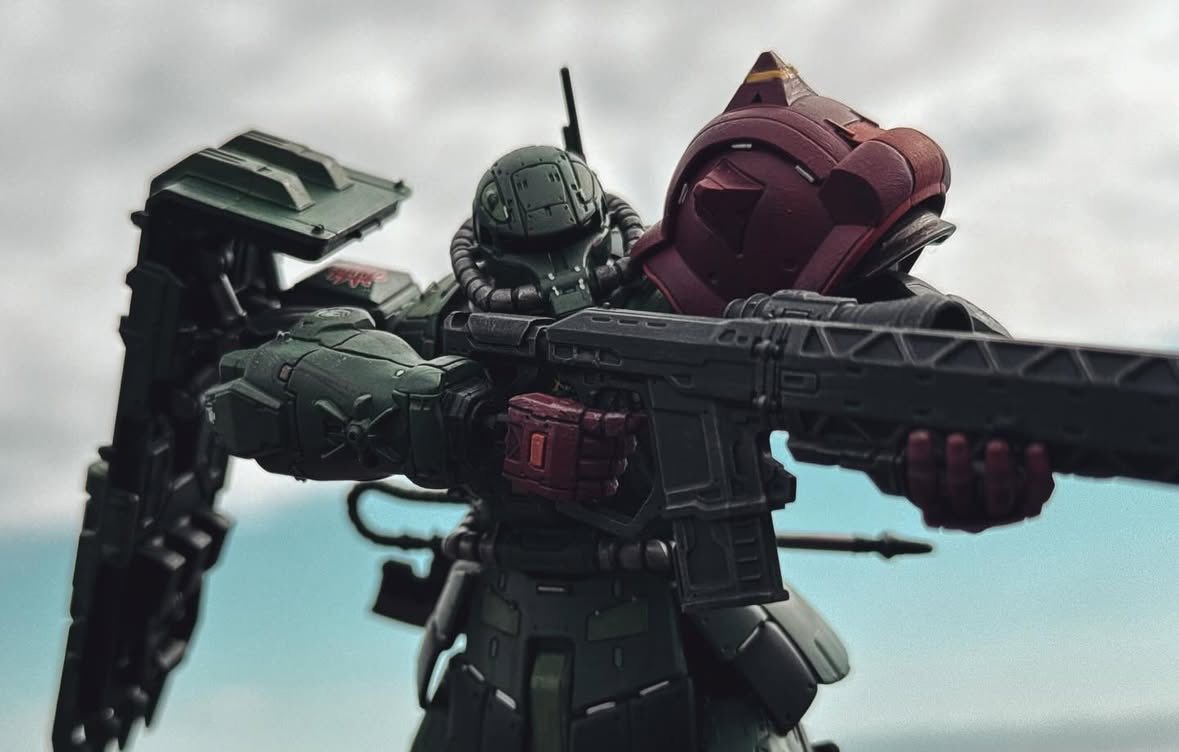 ストックを肩に当てるスナイパーライフルの自然な構え、画角や陰影も素晴らしい!好みです😃