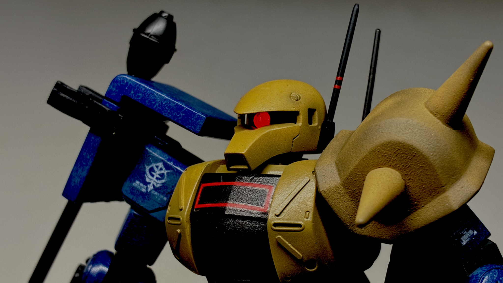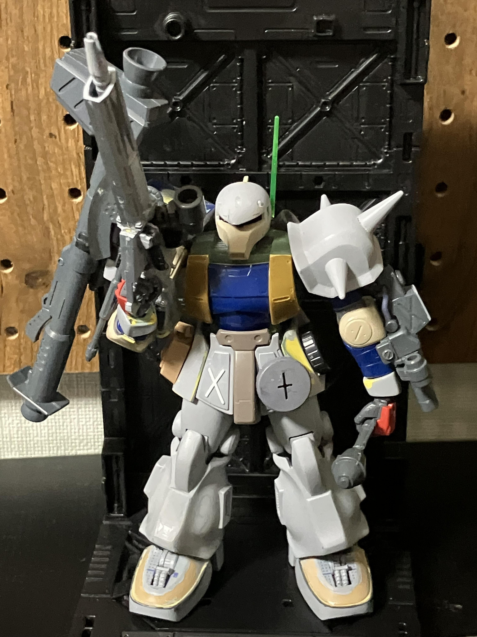 といっても、以前の投稿ログを見る限り、2025年2月頃に制作を開始していたザクⅠの改修もとい改造したものですね。約8ヶ月くらいでしょうか?ようやく完成させました…(サボりですね)