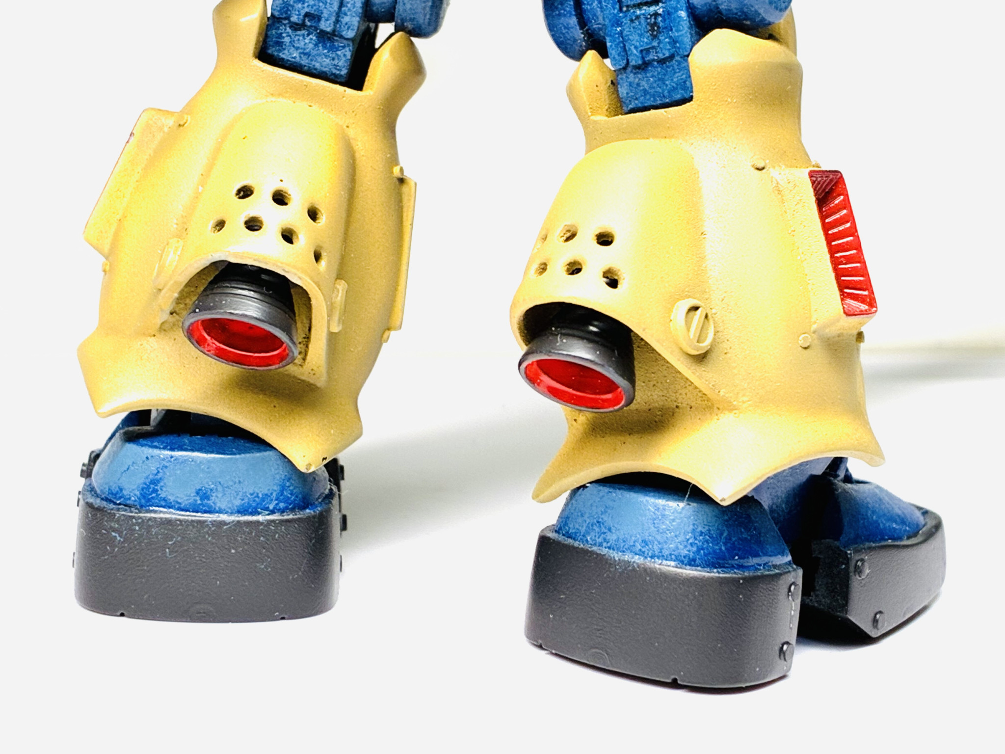 ふくらはぎは複製して、両サイドには排熱用のダクトを付けて、熱暴走対策してある設定です。股間部はザクⅠスナイパーの物を流用。