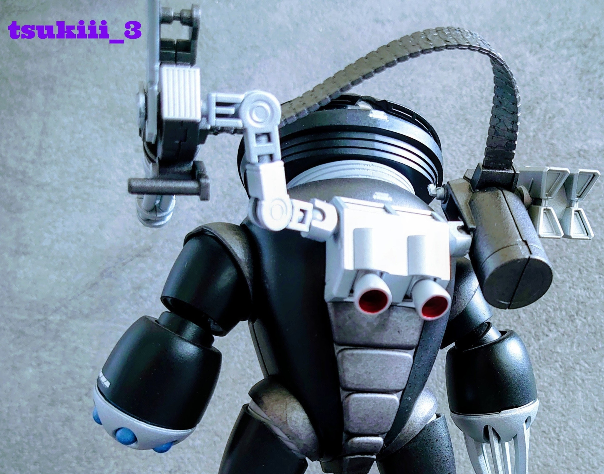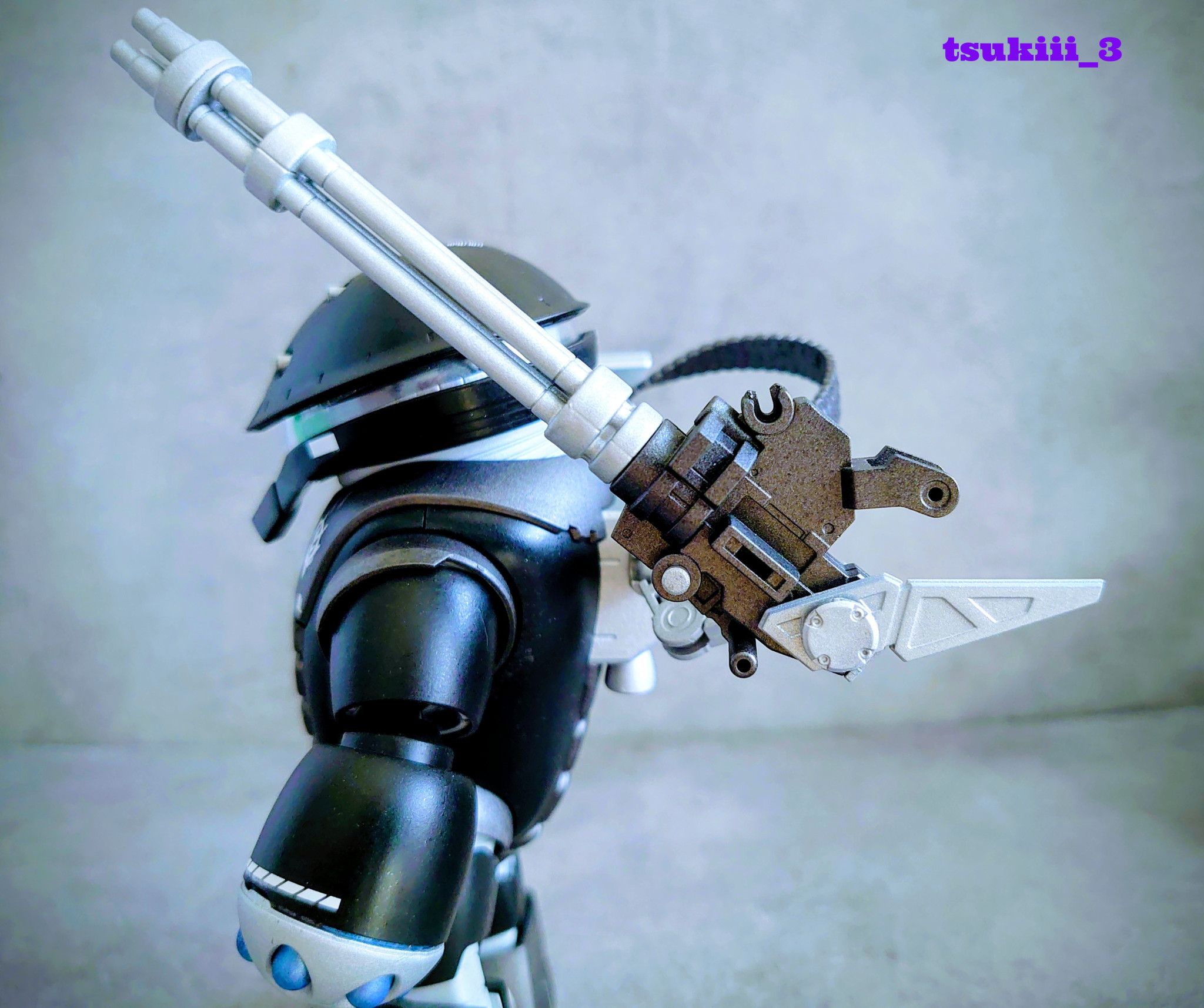 肩部ガトリングガン、ドラムマガジン:30MM+ジャンクパーツでアンテナ装備