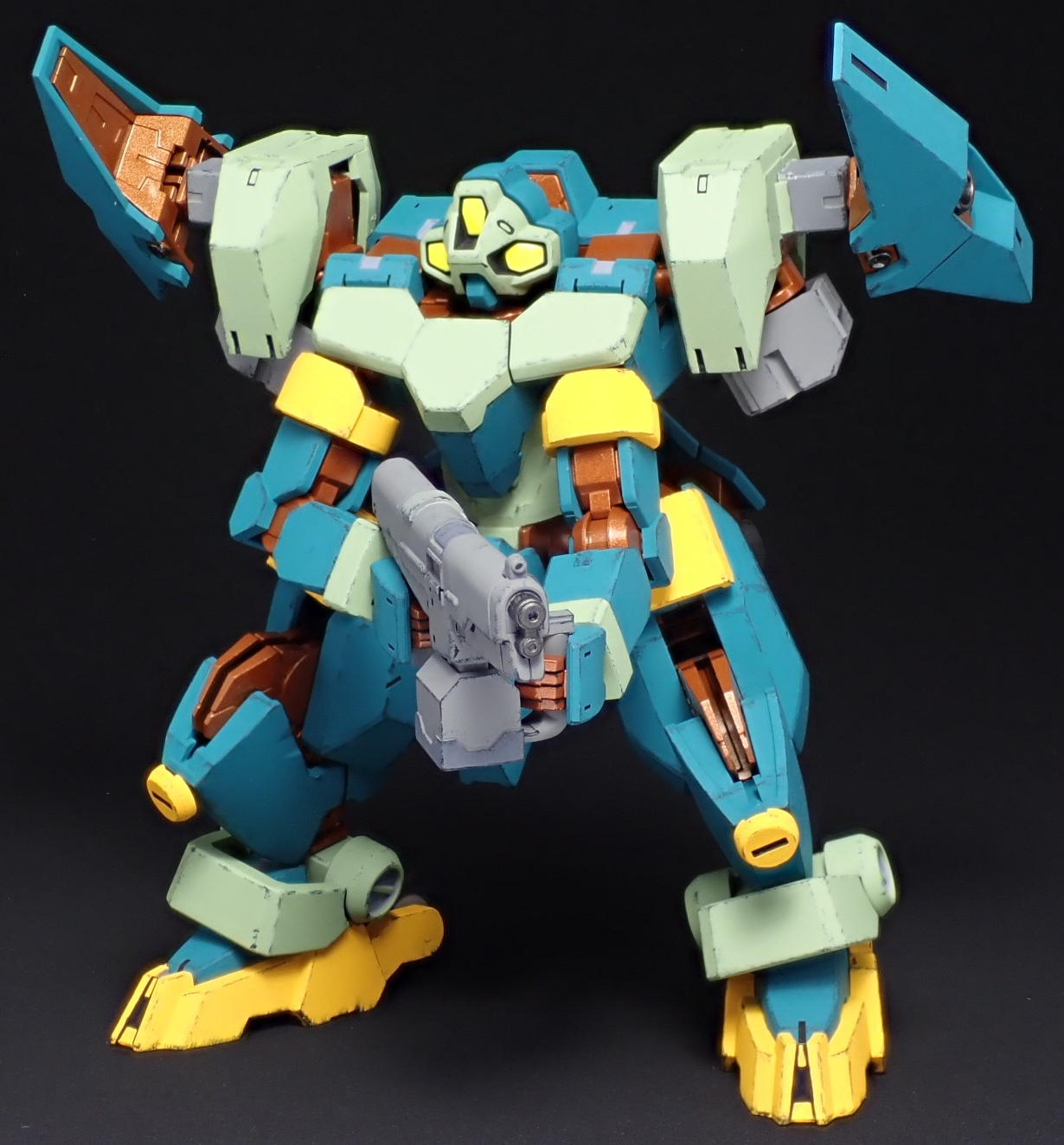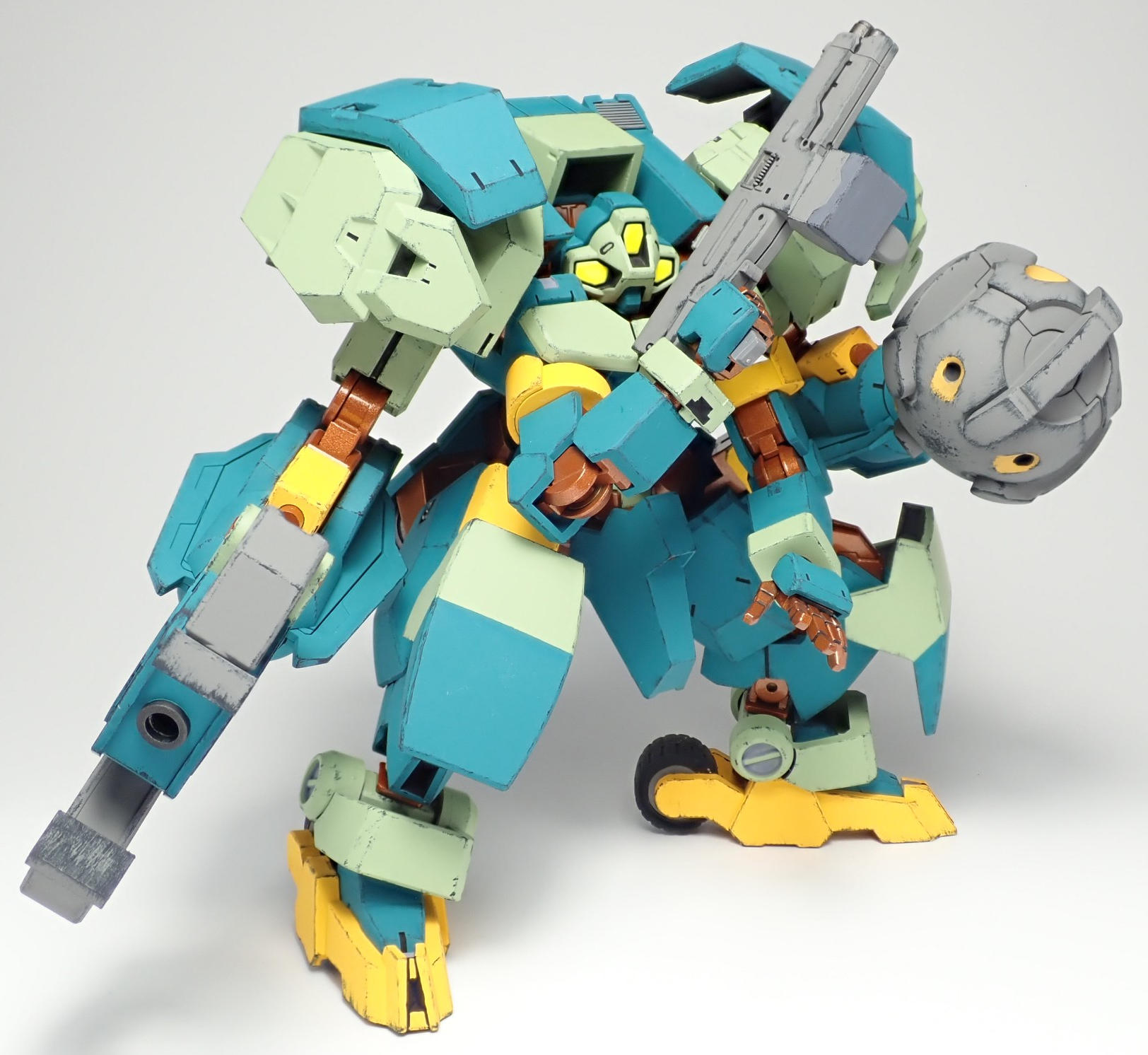 背部に多数のバーニアとローラーが組み込まれた脚部によって見た目以上の機動性を持ちますが、重量増によって運動性能には問題がありました。