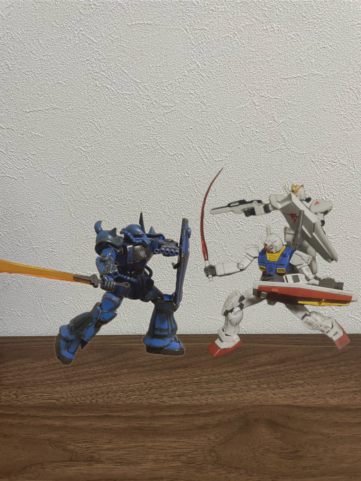 グフの汚れ具合がいいですね。単身赴任淋しいですが、ゆっくりガンプラ楽しめますね。