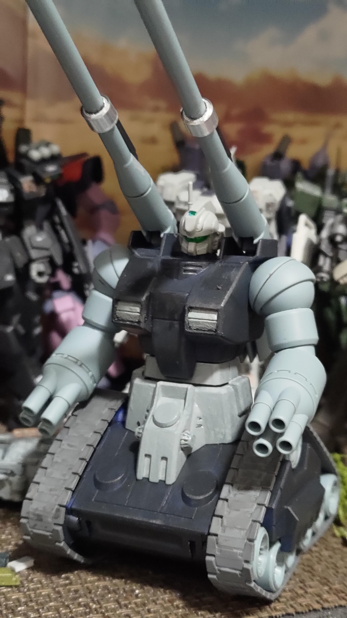 フォロー様のネ甲やん様のガンキャノン北米戦仕様と量産型ガンキャノン北米戦仕様に一目惚れしたのでフリマサイトにて購入したガンタンクを筆塗りにて北米戦仕様風にしてみました、誠に勝手ながらメッチャ参考にさせて頂きましたのでこの場を借りてお礼を言わせてもらいます、ありがとうございました!