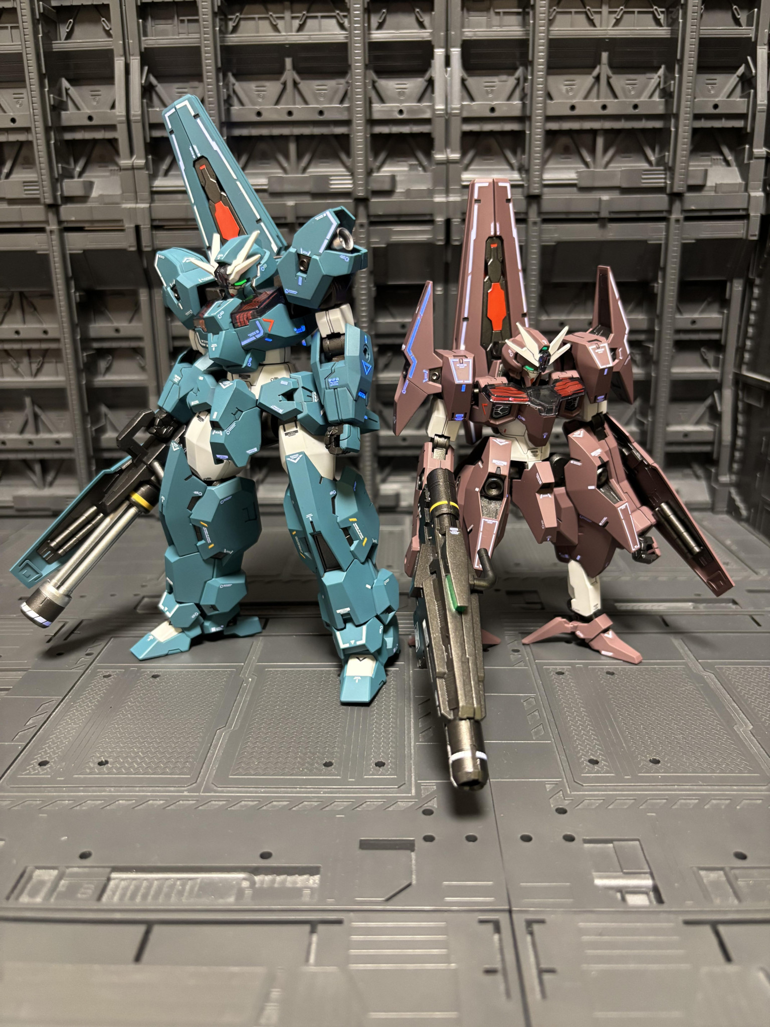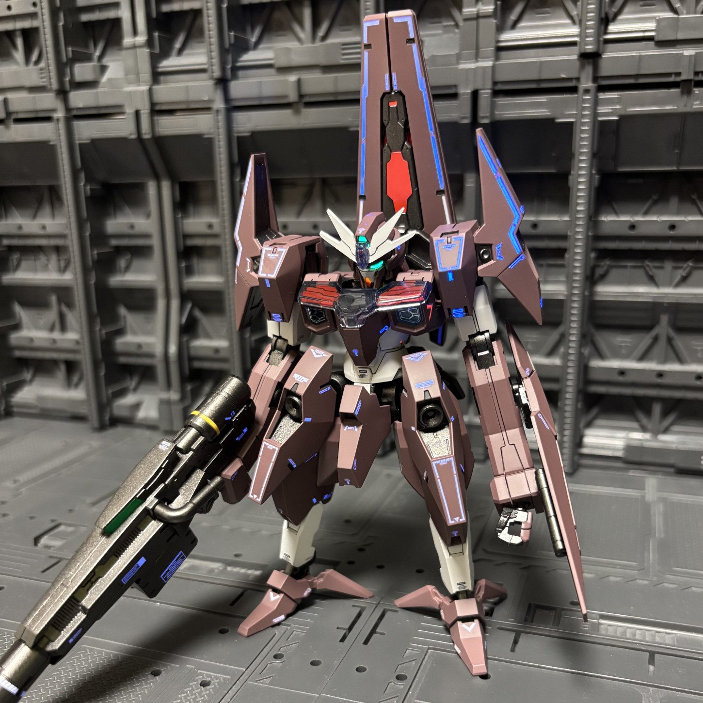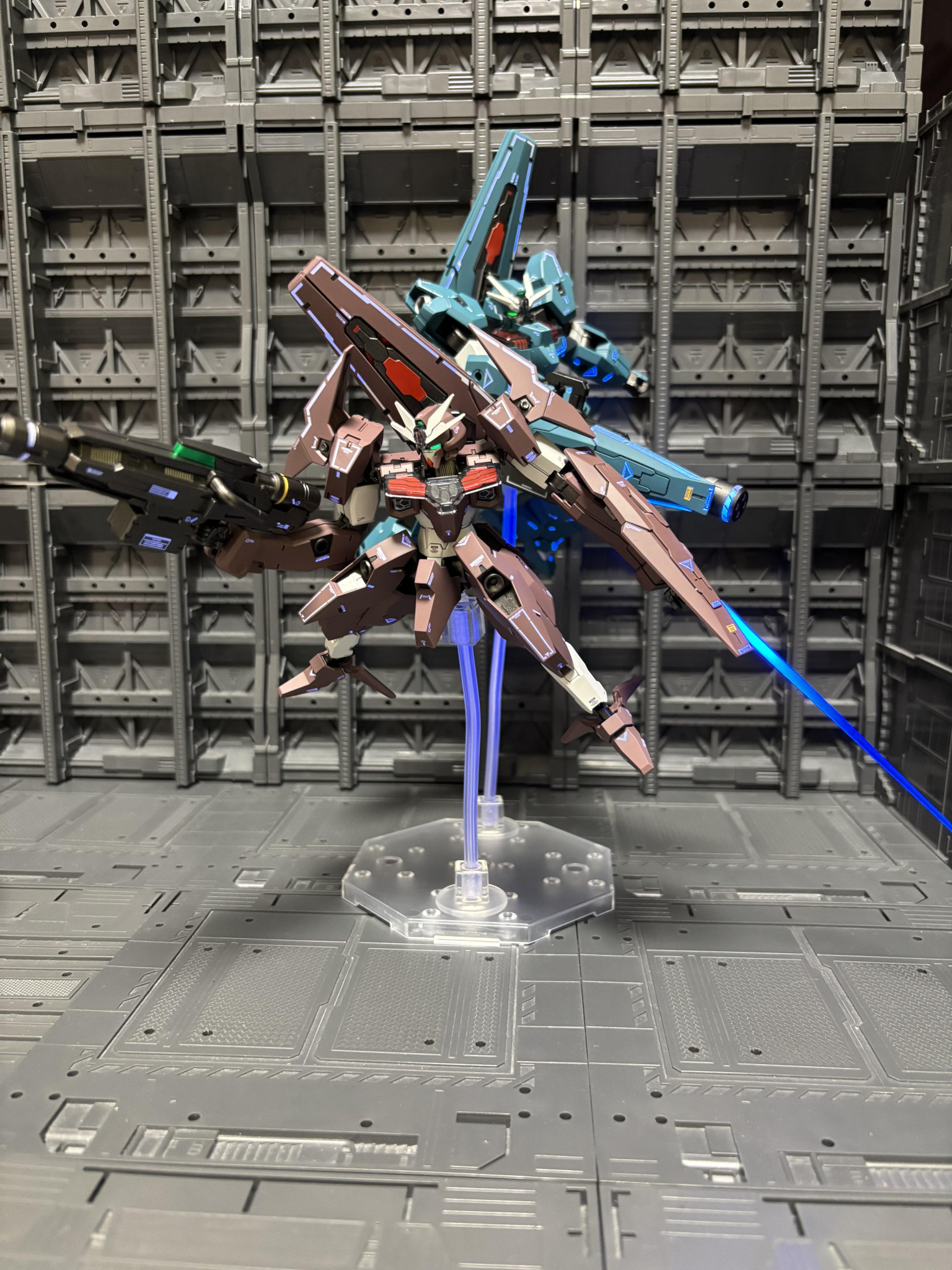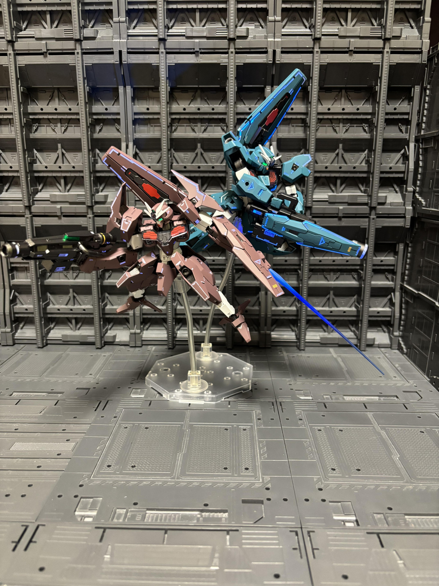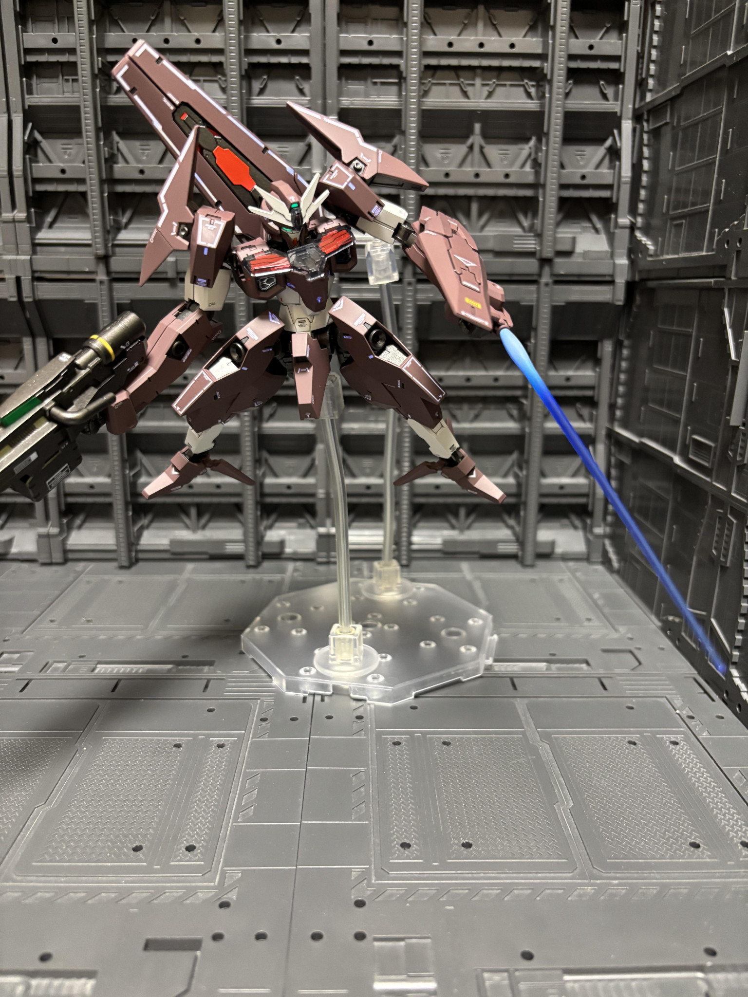 浮かせて武器を構えさせるとかっこいいですね笑ツインアイは蛍光塗料で光ります。