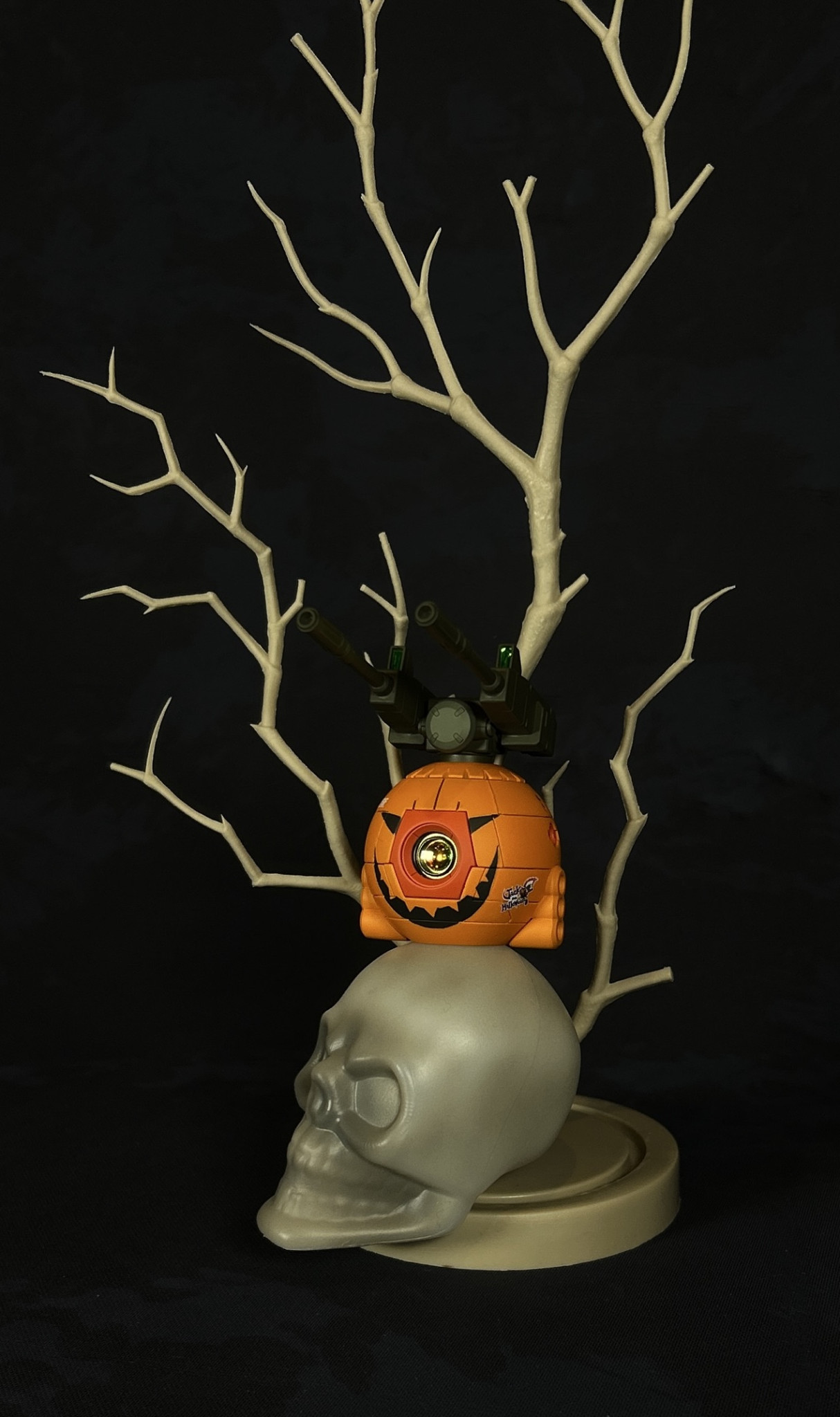 HGボールを用いてハロウィン向けにジャック•オー•ランタンを製作しました。合わせ目消しと砲身の短縮、操縦席をカメラレンズに置き換えて頭部感が出るように加工しました。