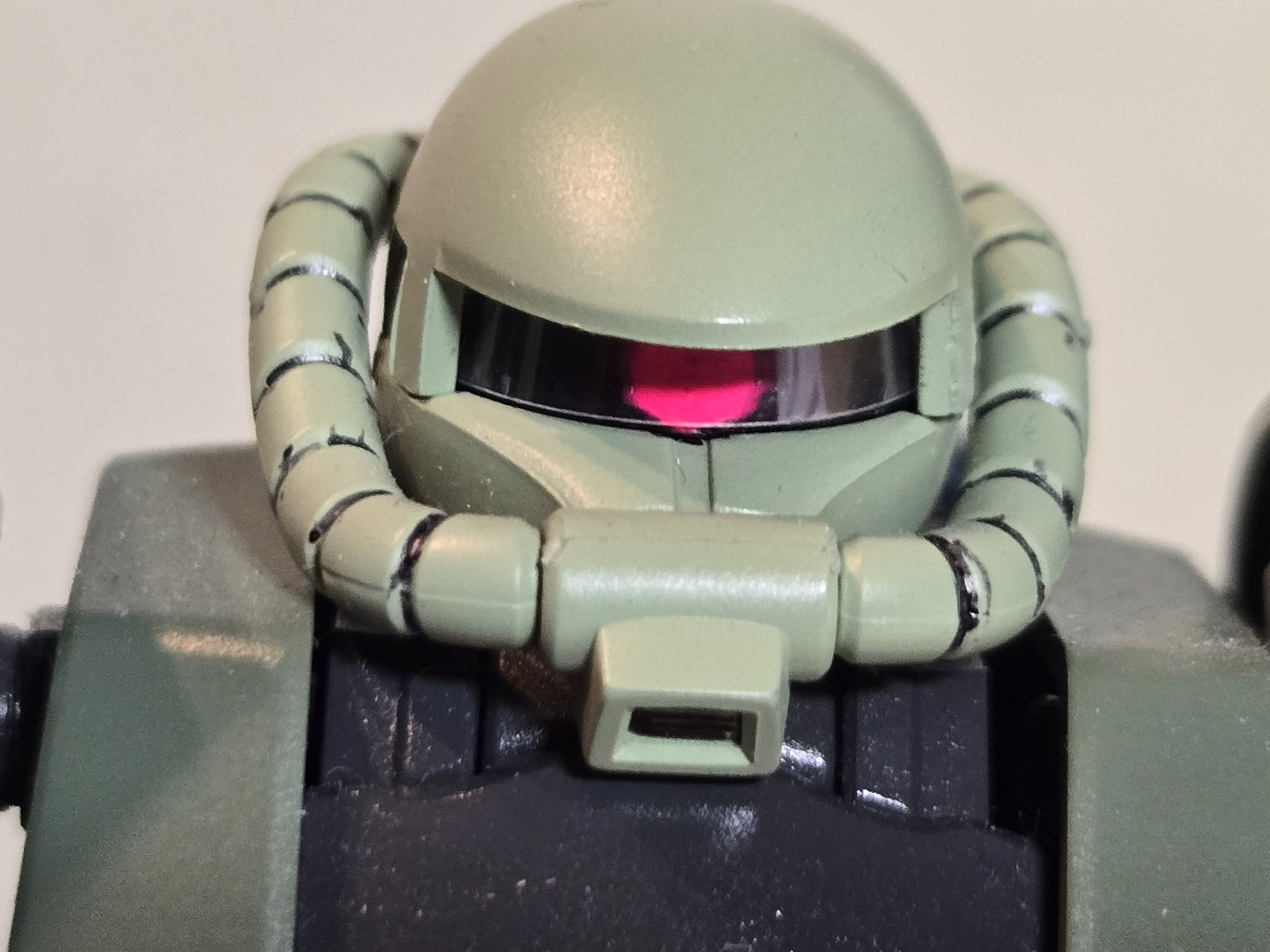 リバイバル版の量産型ザクです。ザクのカラーはこれですよね。やはり、この色がザクは似合います。スタイルの違いからなのか、FGのモデルとは違う良さが出たと思います。