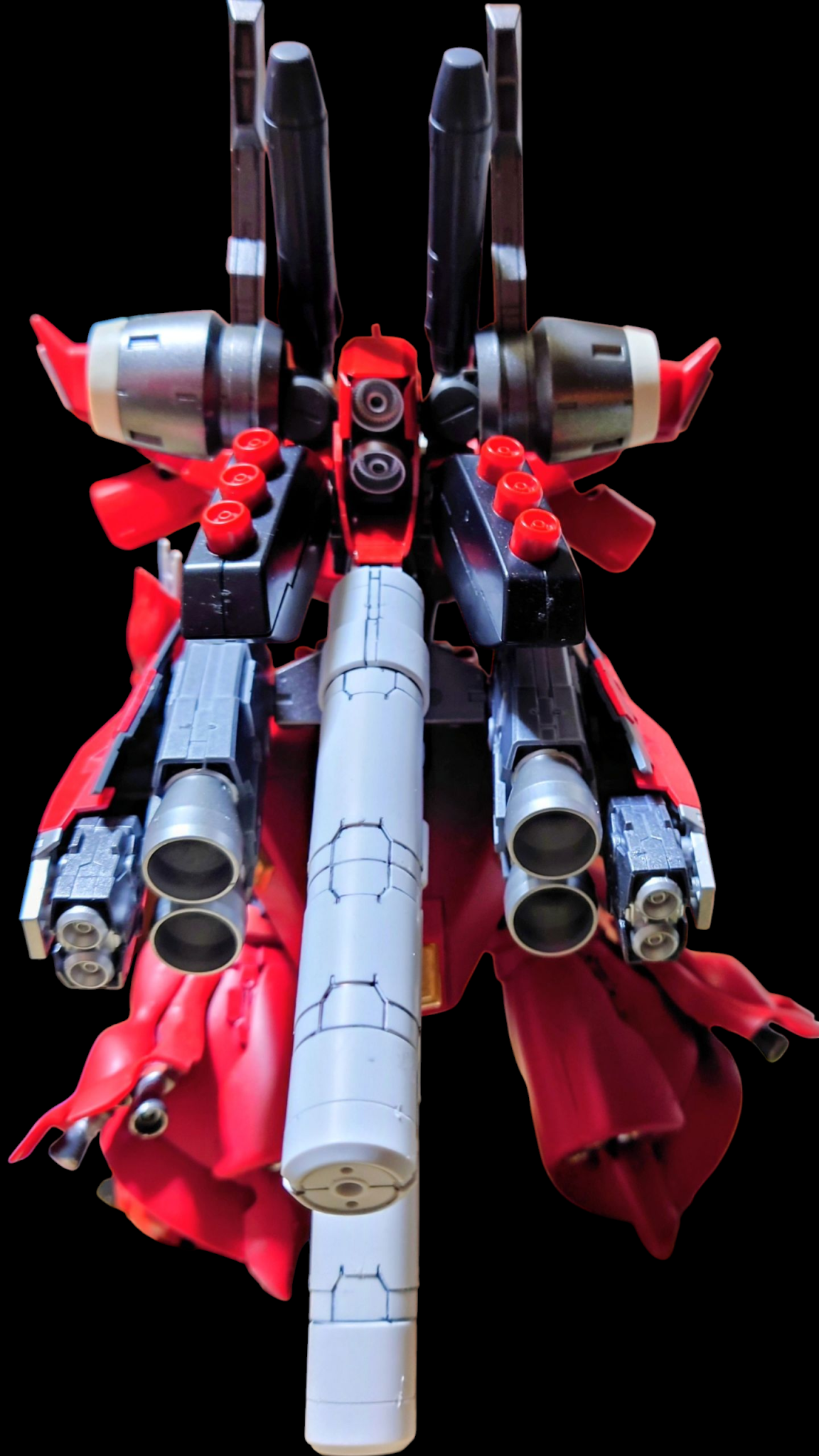 スラスターは脚に左右各10、腰部に6あるので背部のは過剰かとも思いましたが、バックパック使いたかったので。