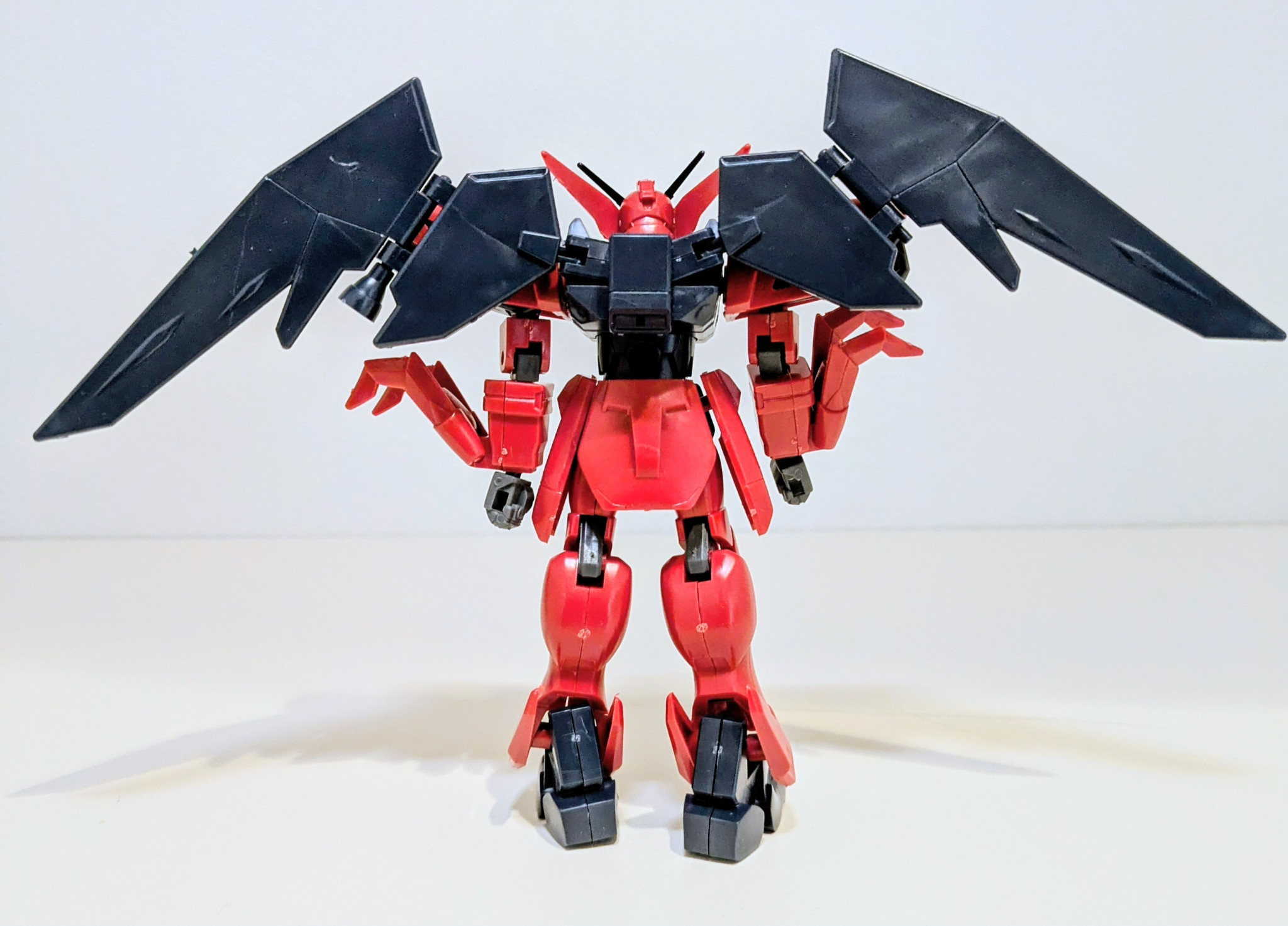 今回のキットは羽と腕、腹の部分のギミックが特徴です。羽を広げると思ったより大きくなるのが、素晴らしいポイントです。