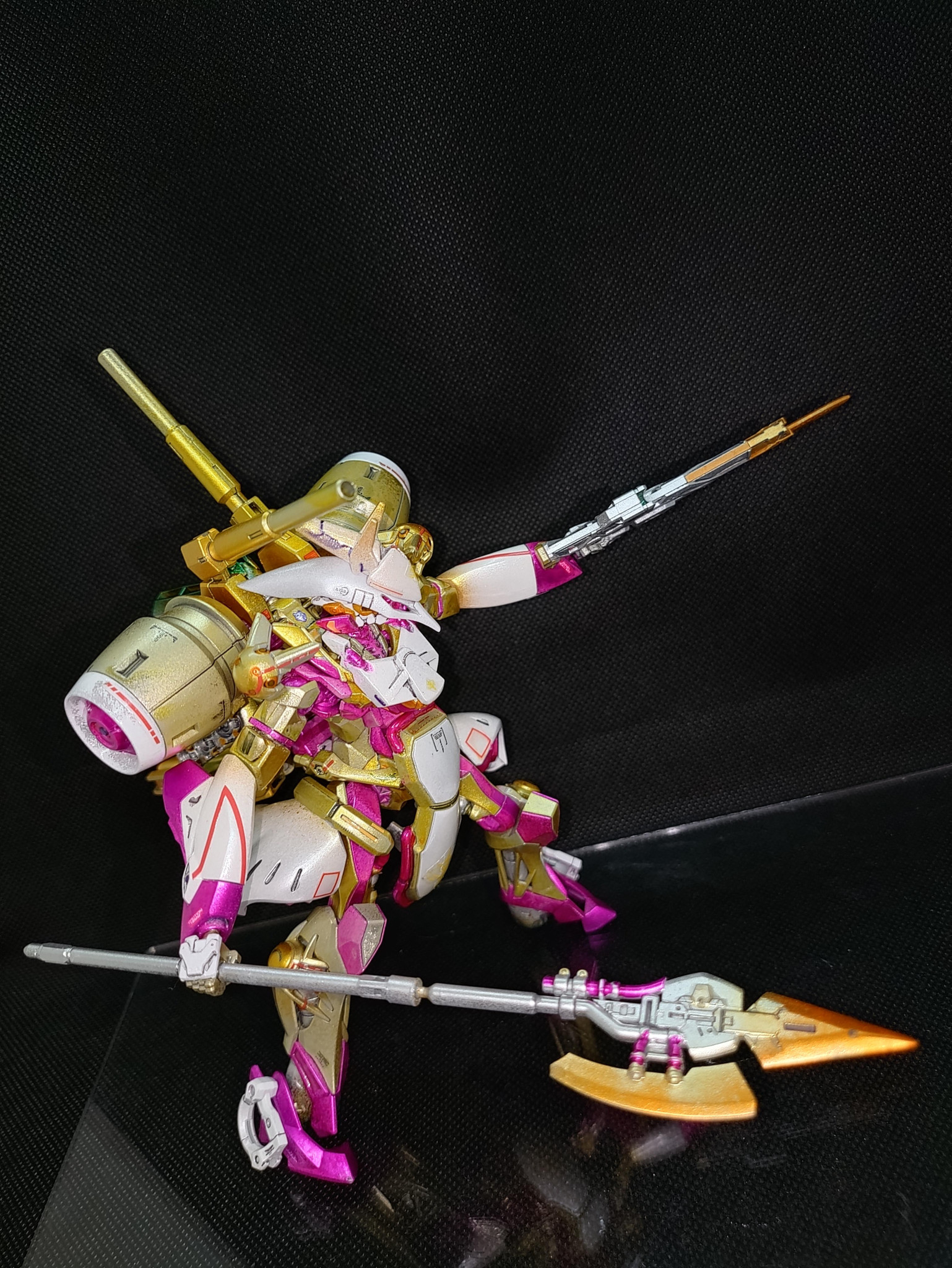 固定武装としてバオリパックのビーム砲に足ビームサーベル、手持ち武装として銃剣型ビームライフルとヒートハルバート。