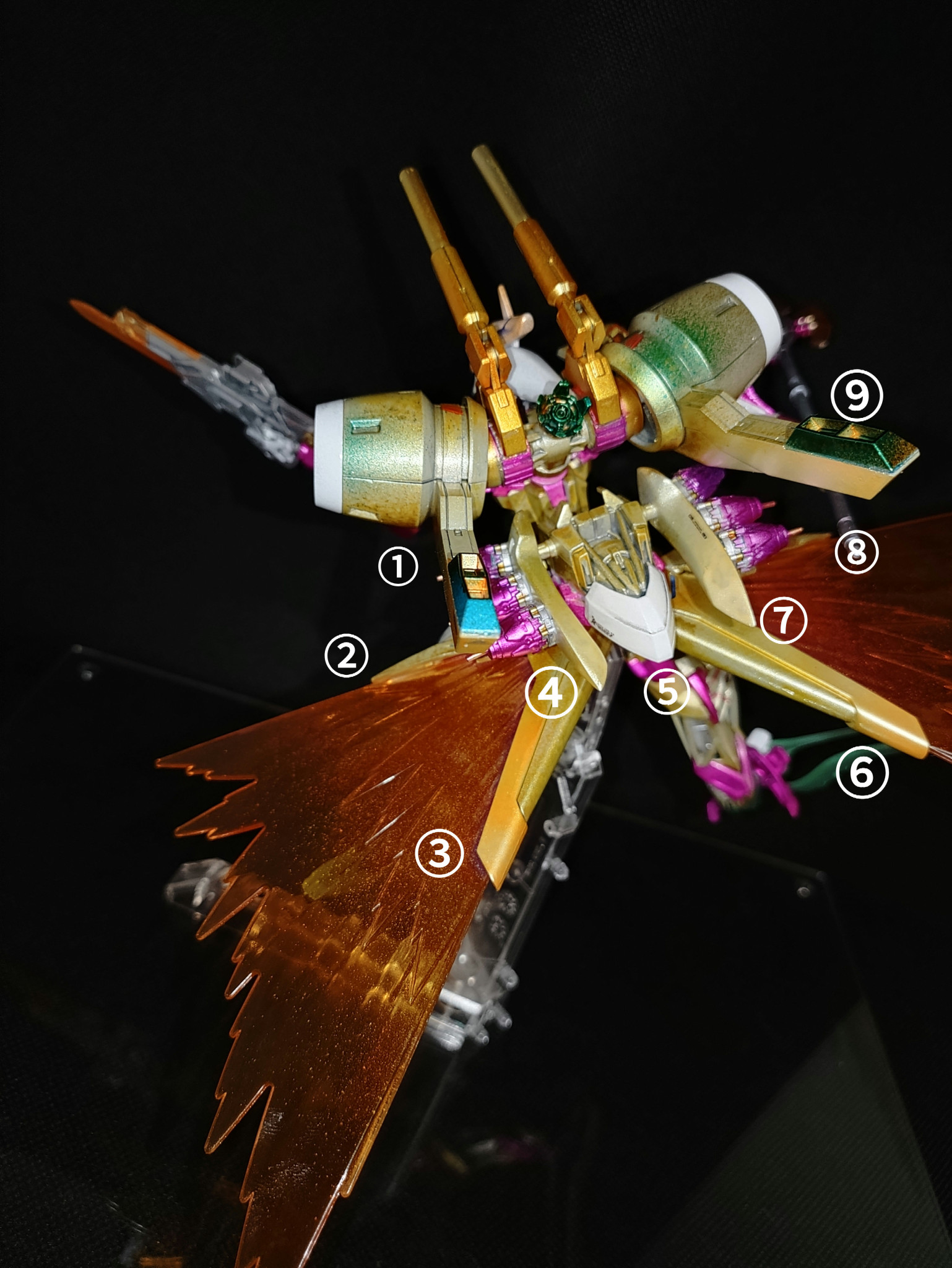尻尾左右のウイングはファンネルラック。ビルダーズパーツのバーニアを使ってます。